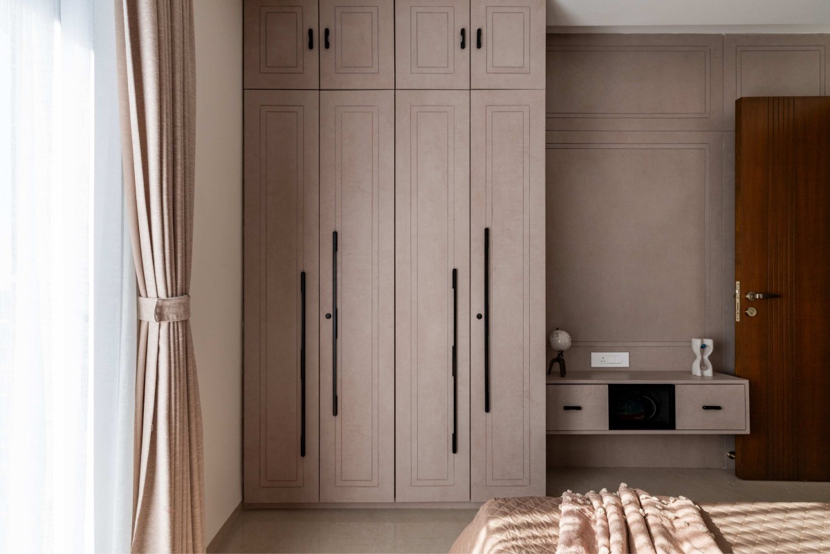 Each of the three bedrooms carries a distinct theme, expressed through varied colour stories, textures, and lighting moods, while maintaining a cohesive design language. The false ceiling design plays a key role across spaces—treated as a visual element rather than a mere functional layer—using modern textures, clean geometric patterns, and indirect lighting to elevate ambience.