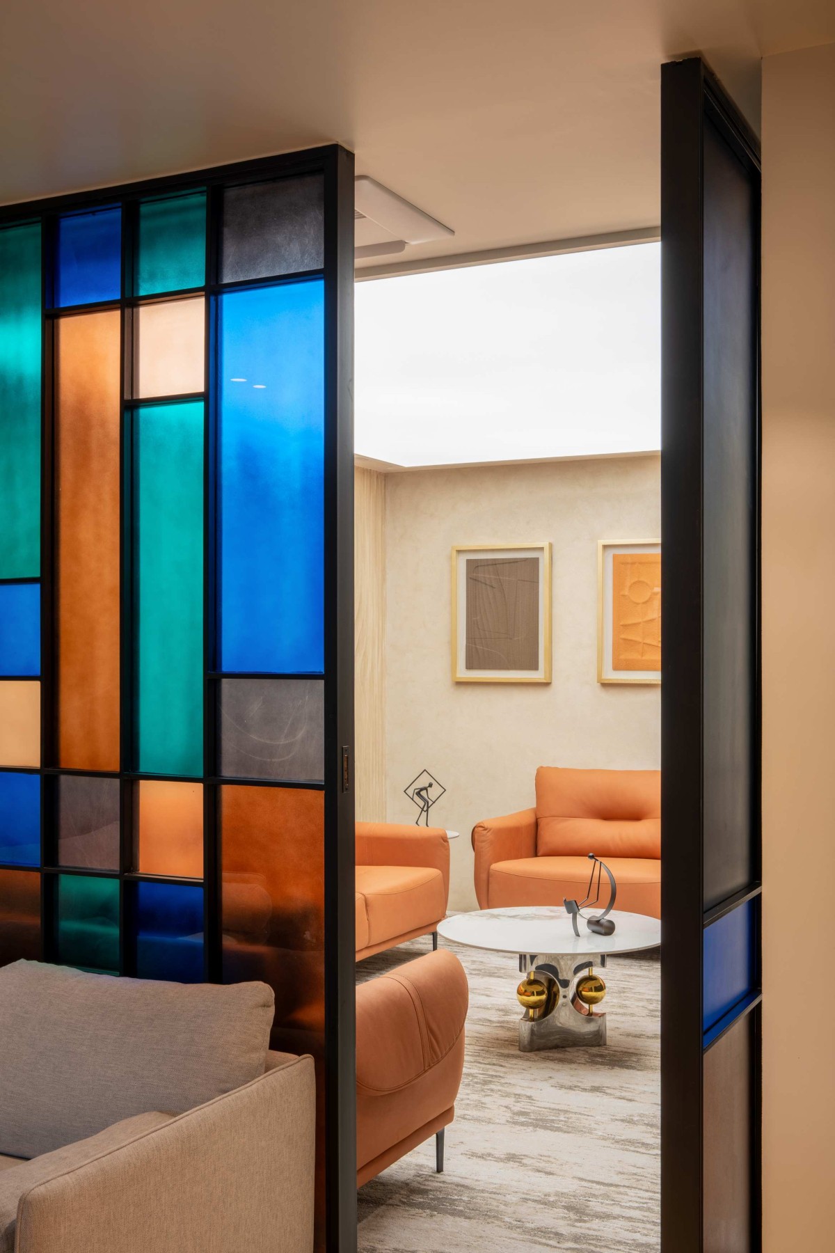 Reception to lounge area & conference area view of Ashapura China-clay Office by Studio Revah