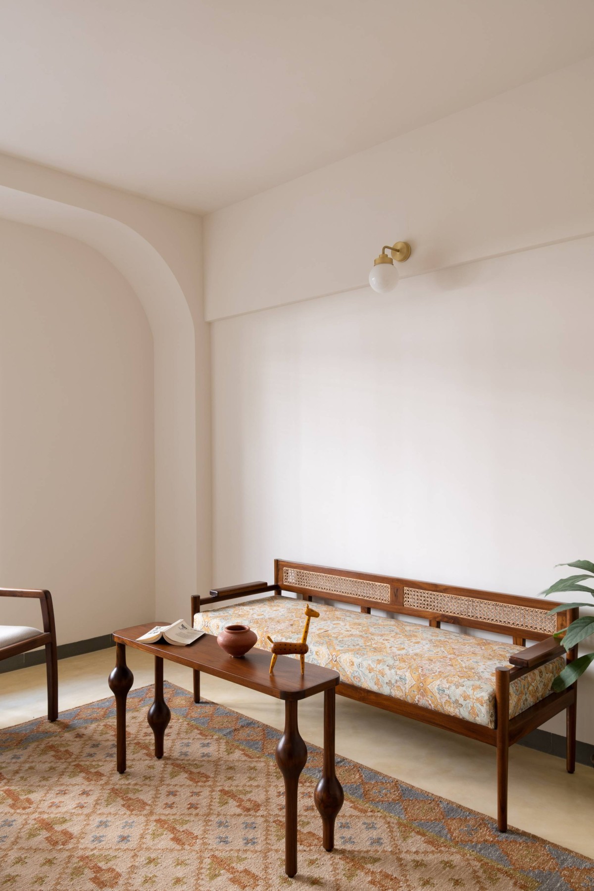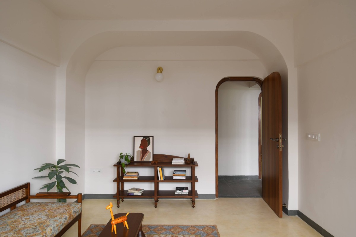 While the space drew inspiration from architectural cues found in another cultural context, the spirit of India was gently but embedded through deliberate design choices — the generous use of locally sourced Kota stone flooring, for example, and the recurring presence of arches, which not only softened transitions but added sculptural character. A blend of fixed and loose furniture further carried the narrative forward, combining modern minimalism with warmth through the use of rich teak wood. This was subtly punctuated with brass accents and bamboo, lending the project both elegance and sustainability.