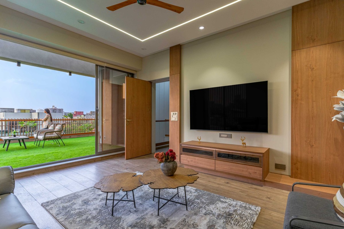 Drawing room of Block House at Vasna by Prashant Parmar Architect
