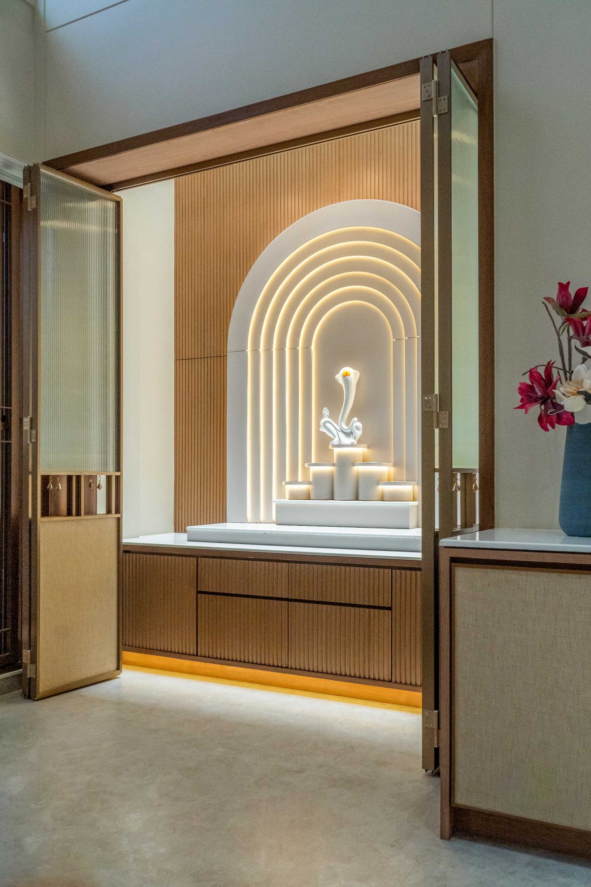 Pooja Mandir of Block House at Vasna by Prashant Parmar Architect