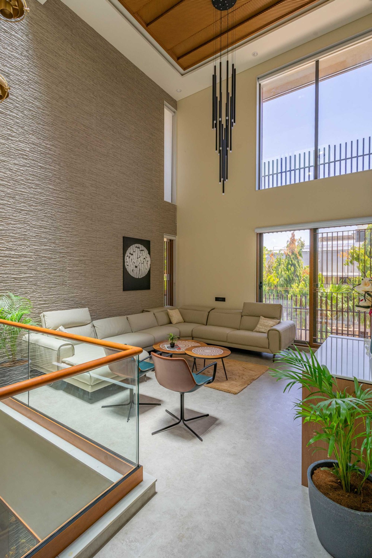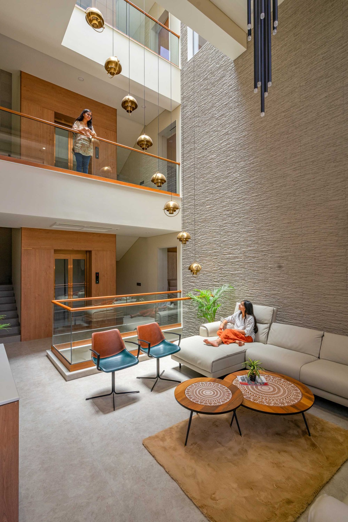 Double Height Family Living of Block House at Vasna by Prashant Parmar Architect