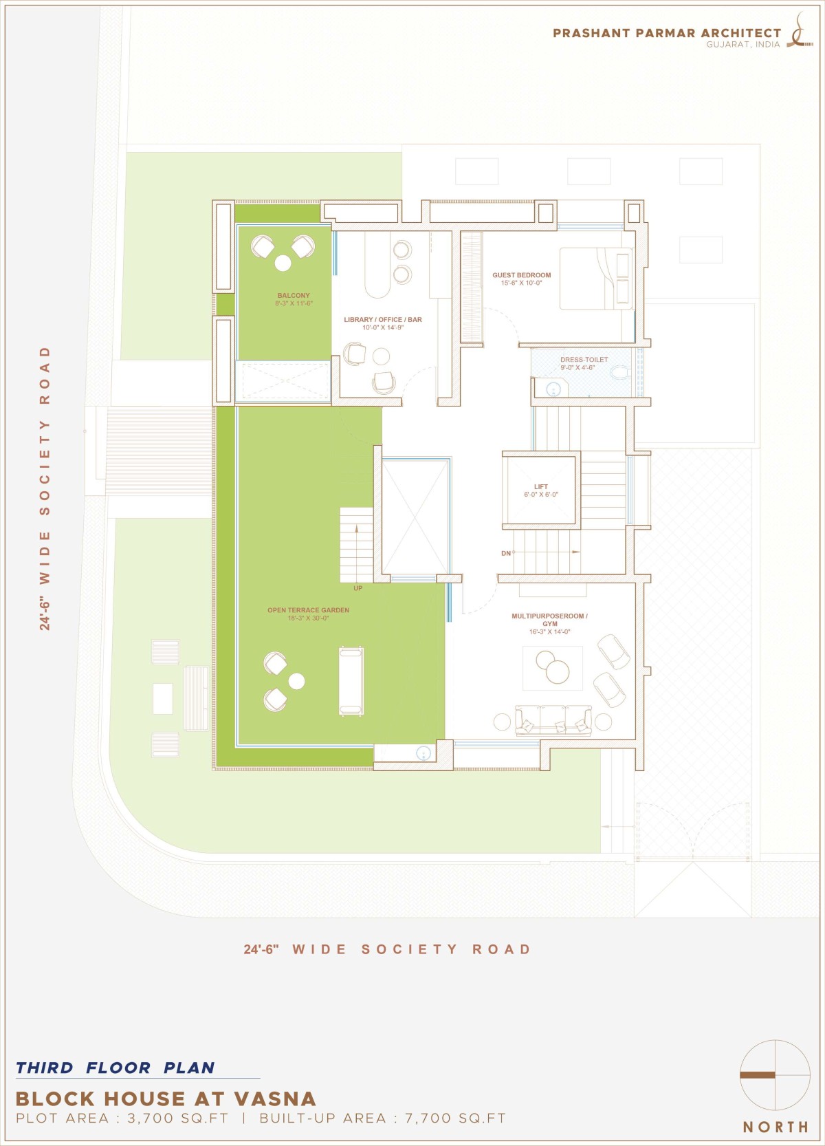 Third Floor Plan of Block House at Vasna by Prashant Parmar Architect