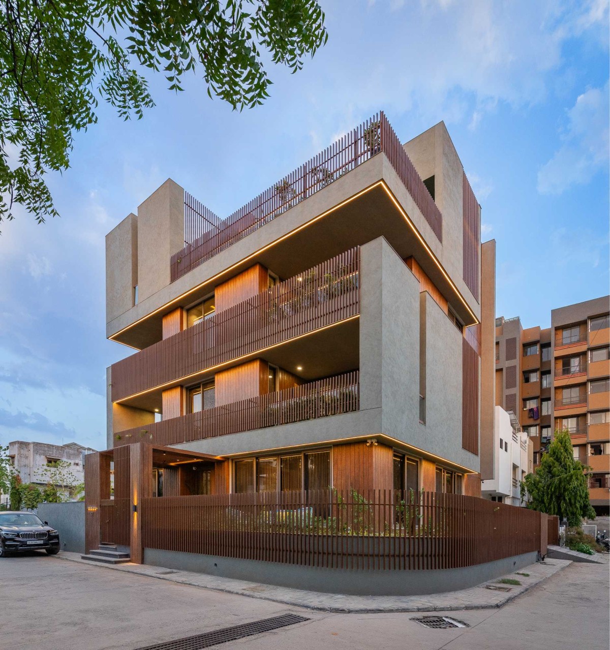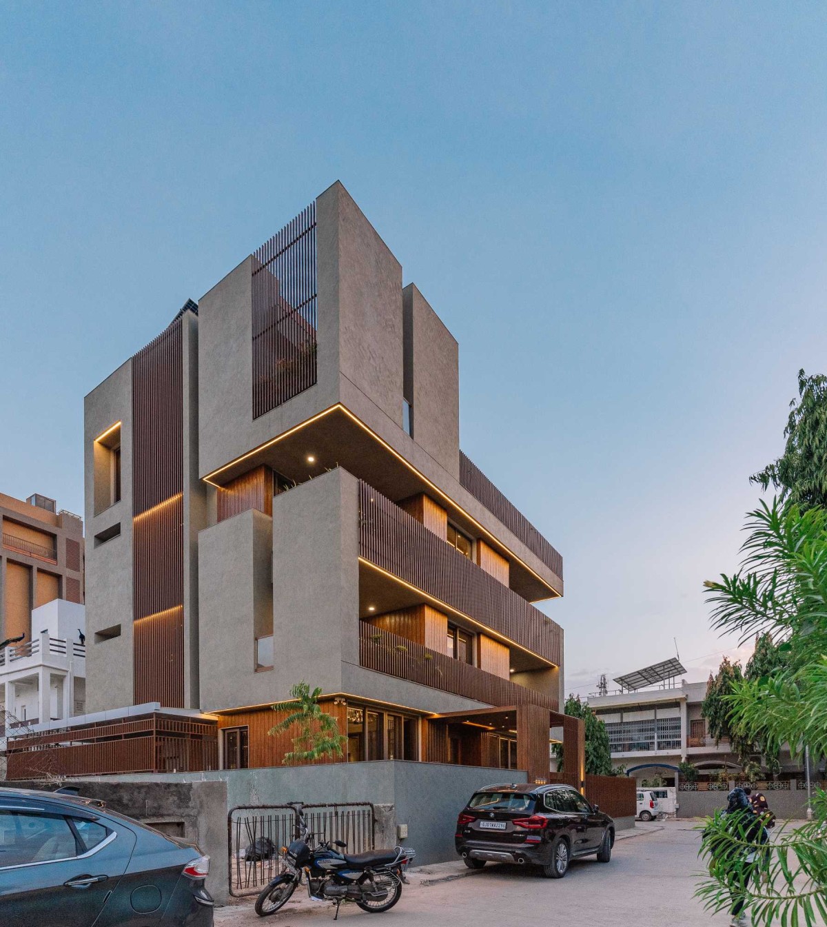 Exterior view of Block House at Vasna by Prashant Parmar Architect
