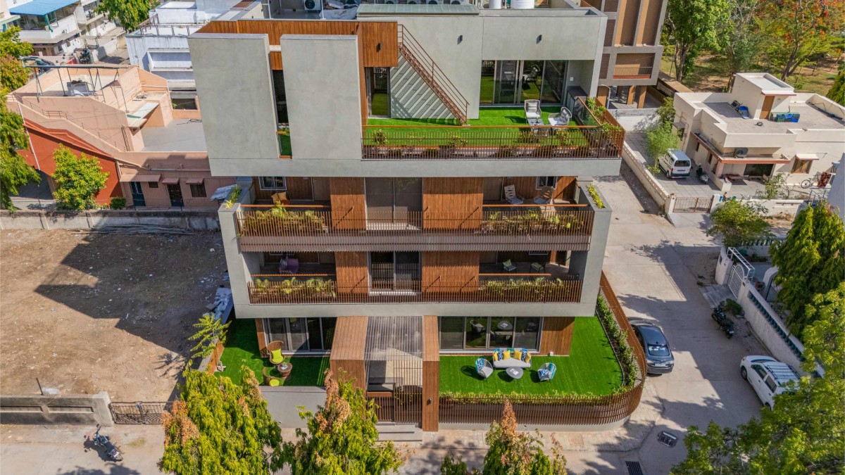 Aerial view of Block House at Vasna by Prashant Parmar Architect