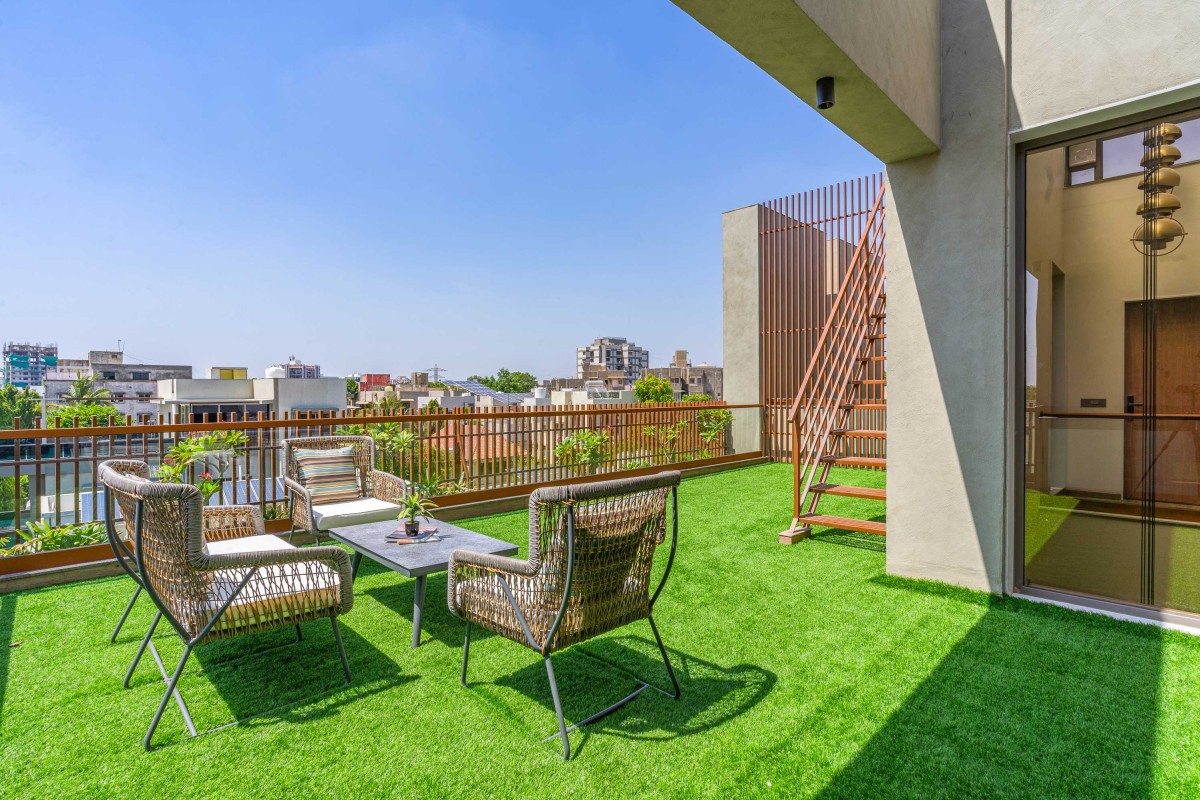 Open Terrace Garden of Block House at Vasna by Prashant Parmar Architect
