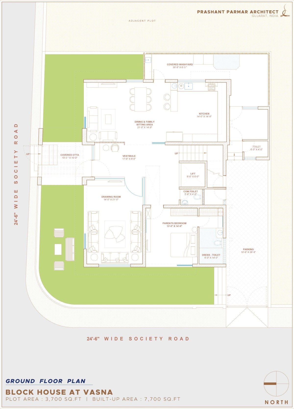 Ground Floor Plan of Block House at Vasna by Prashant Parmar Architect