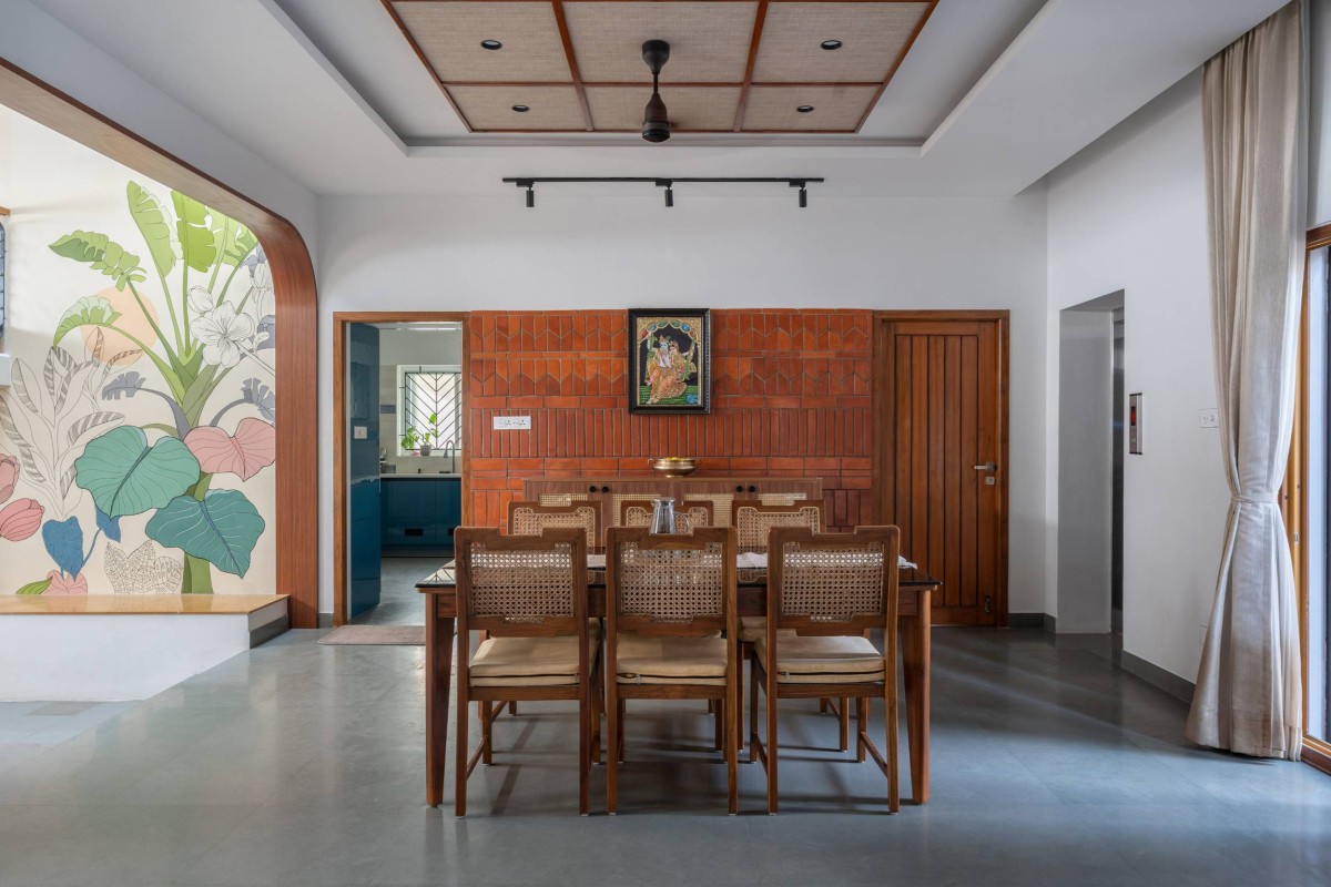 Terracotta Feature wall at Dining Room of Coexistence House by D.L.E.A