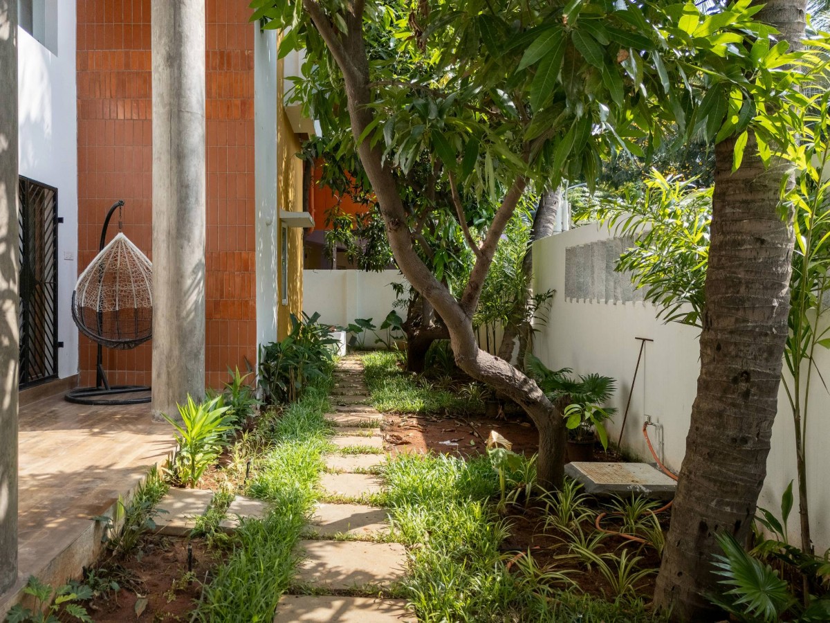 shaded outdoor room nestled between mango and coconut trees—an everyday