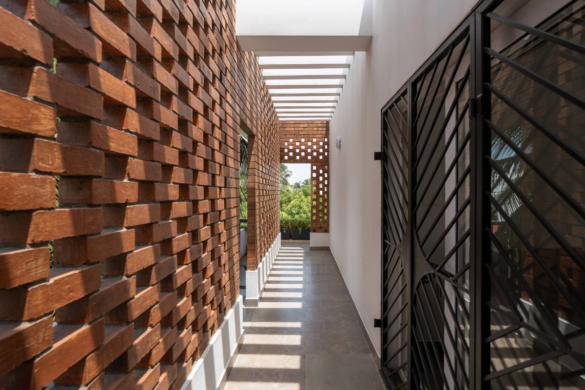 speaks of honesty and craft—exposed brick in herringbone and jaali patterns,