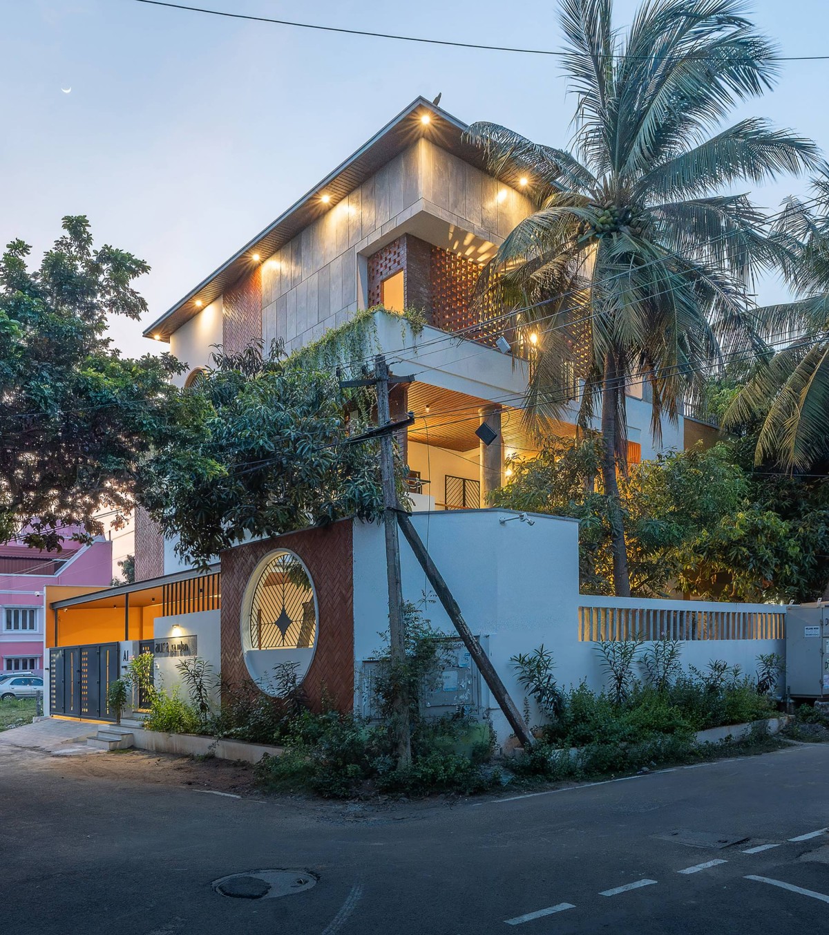 Night exterior view of Coexistence House by D.L.E.A