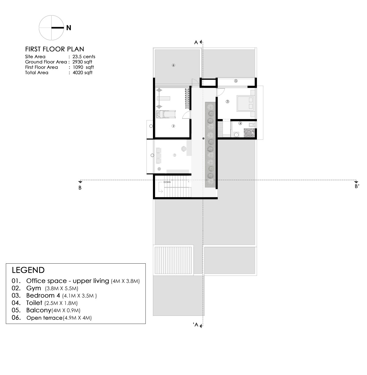 The first floor houses a compact gymnasium and a bedroom, continuing the same sense of balance and openness found below. The upper levels also capture glimpses of the landscape beyond the boundary filtered views that maintain the fine balance between enclosure and connection.