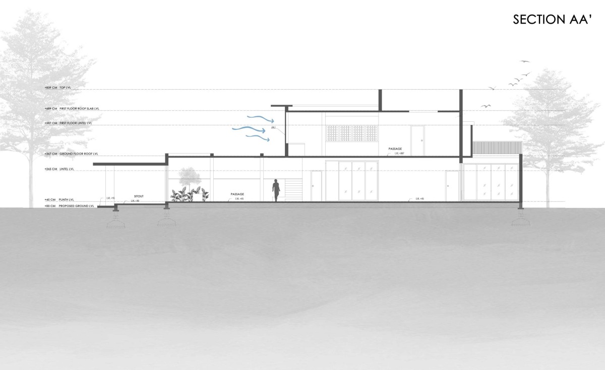 Section AA of Corridor House 2.0 by i2a Architects Studio