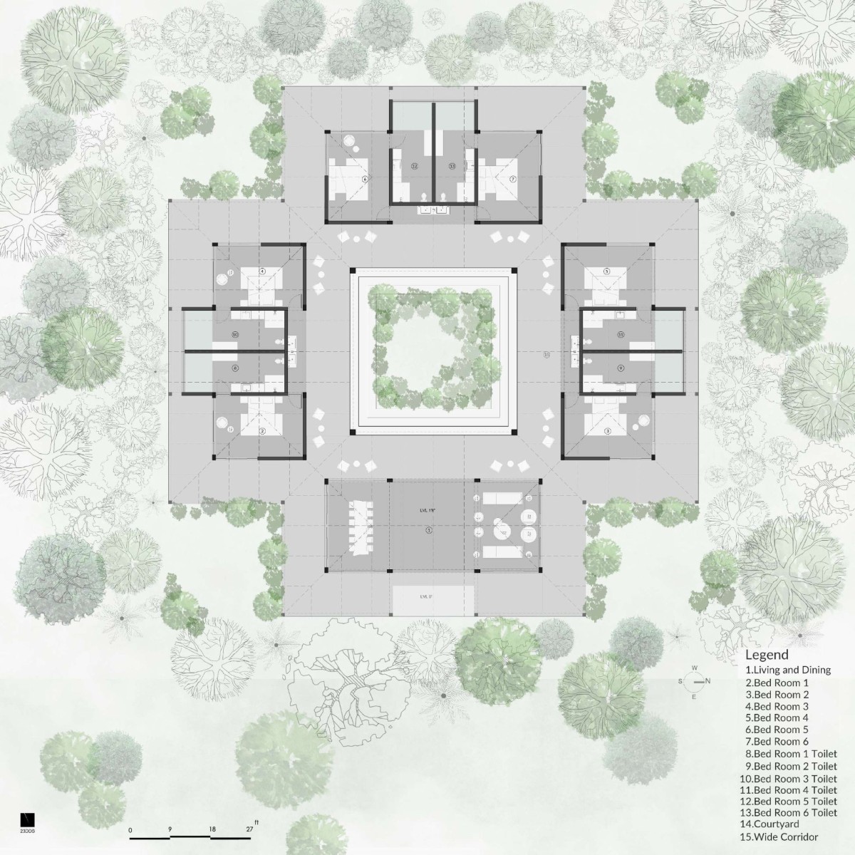 Floor Plan of Courtyard House by 23 Degrees Design Shift