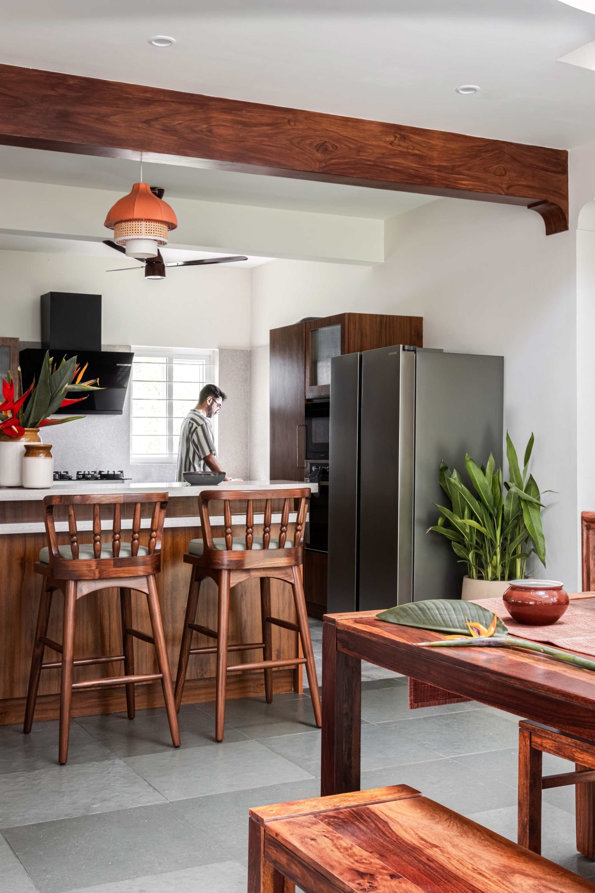 Dining to Kitchen view of Dhaara Residence by Aanai Design Studio