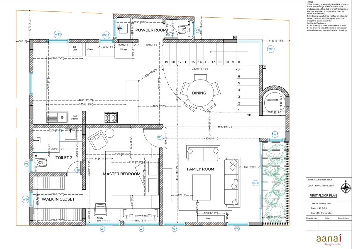 First Floor Plan of Dhaara Residence by Aanai Design Studio