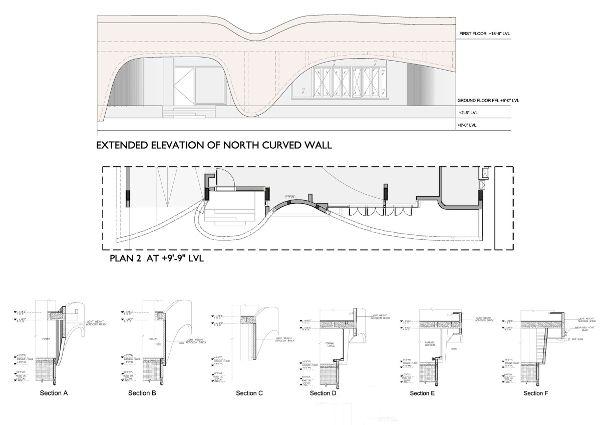 The spatial layout flows freely, open yet intimate, encouraging both communal gatherings and personal retreat. Nature is thoughtfully woven into the architecture through internal courts and green pockets, allowing the home to breathe. Sculptural in form, the façade features fluid lines and earthy textures, complemented by lush landscaping.