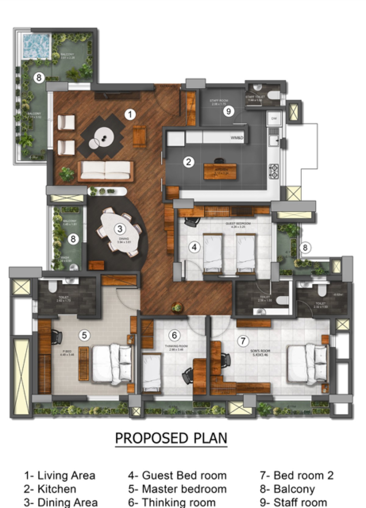 •Wooden Furniture: We sourced teak furniture from local manufacturers, who crafted each piece with attention to detail and quality. From custom-built dining tables to intricately designed chairs and shelves, the furniture pieces added both functional value and aesthetic richness to the apartment. The warmth of the teak complemented the stone and oxide finishes, creating a cohesive and inviting atmosphere throughout.