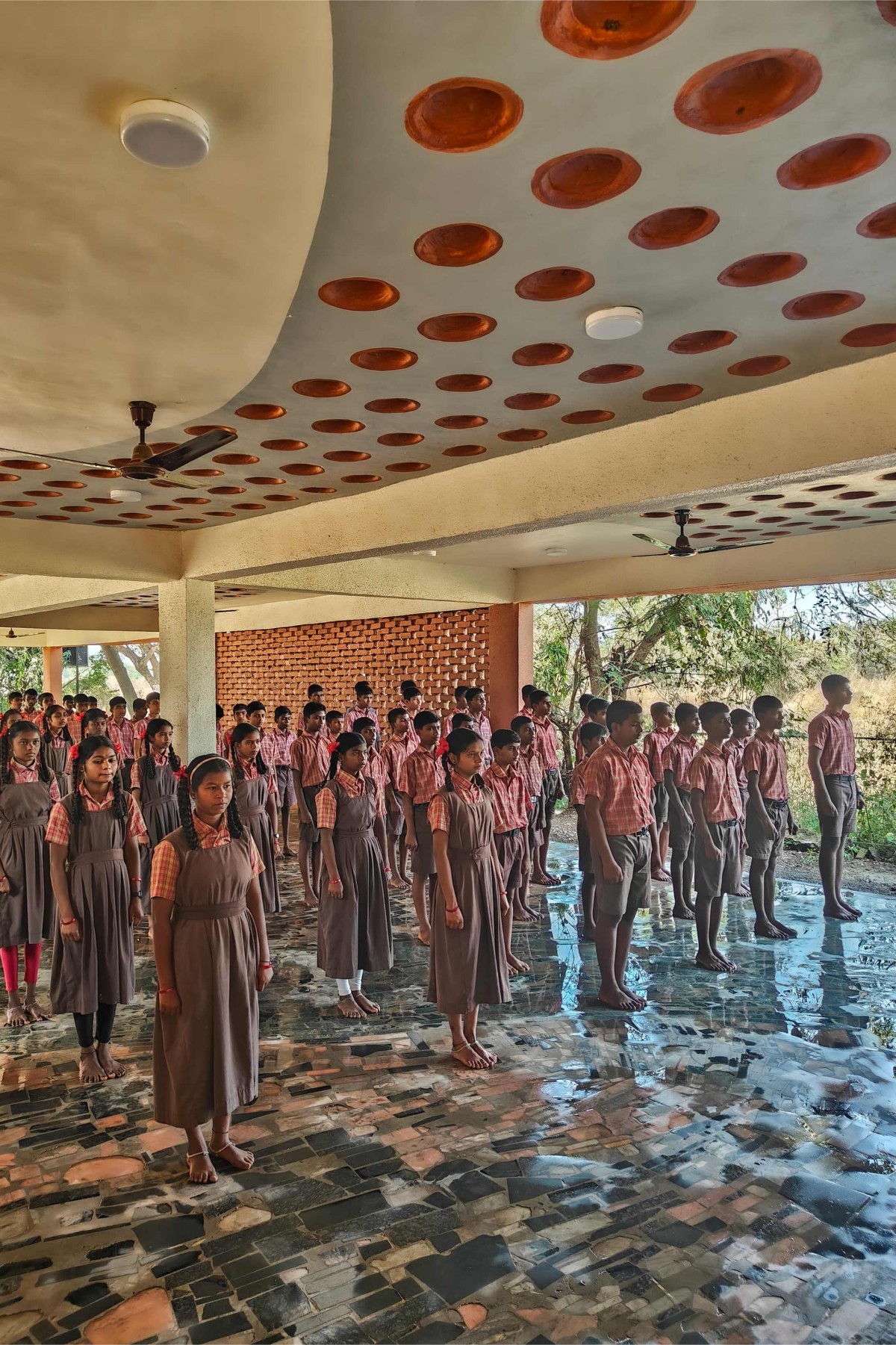 Morning Assembly of Flood Affected School at Kelthan Village by unTAG Architecture and Interiors