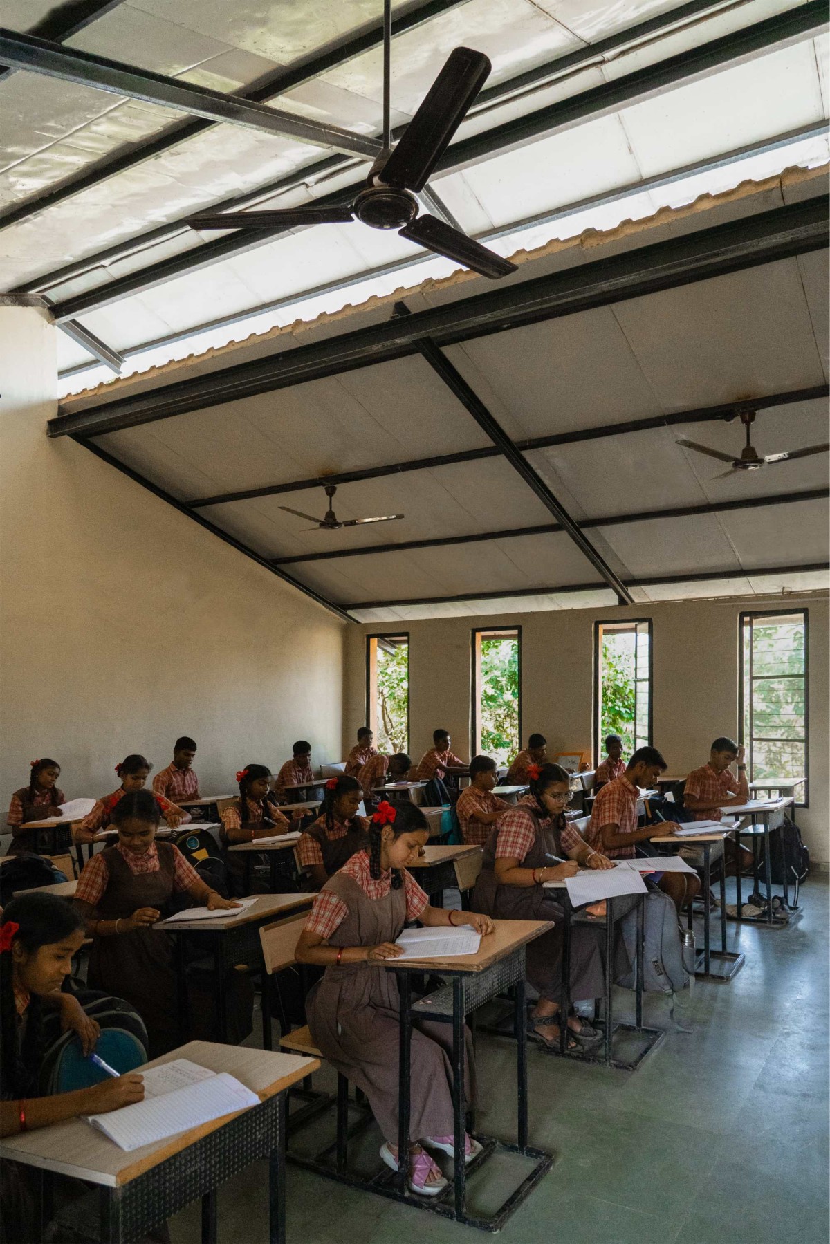 Classroom - crossventilated and well-lit of Flood Affected School at Kelthan Village by unTAG Architecture and Interiors