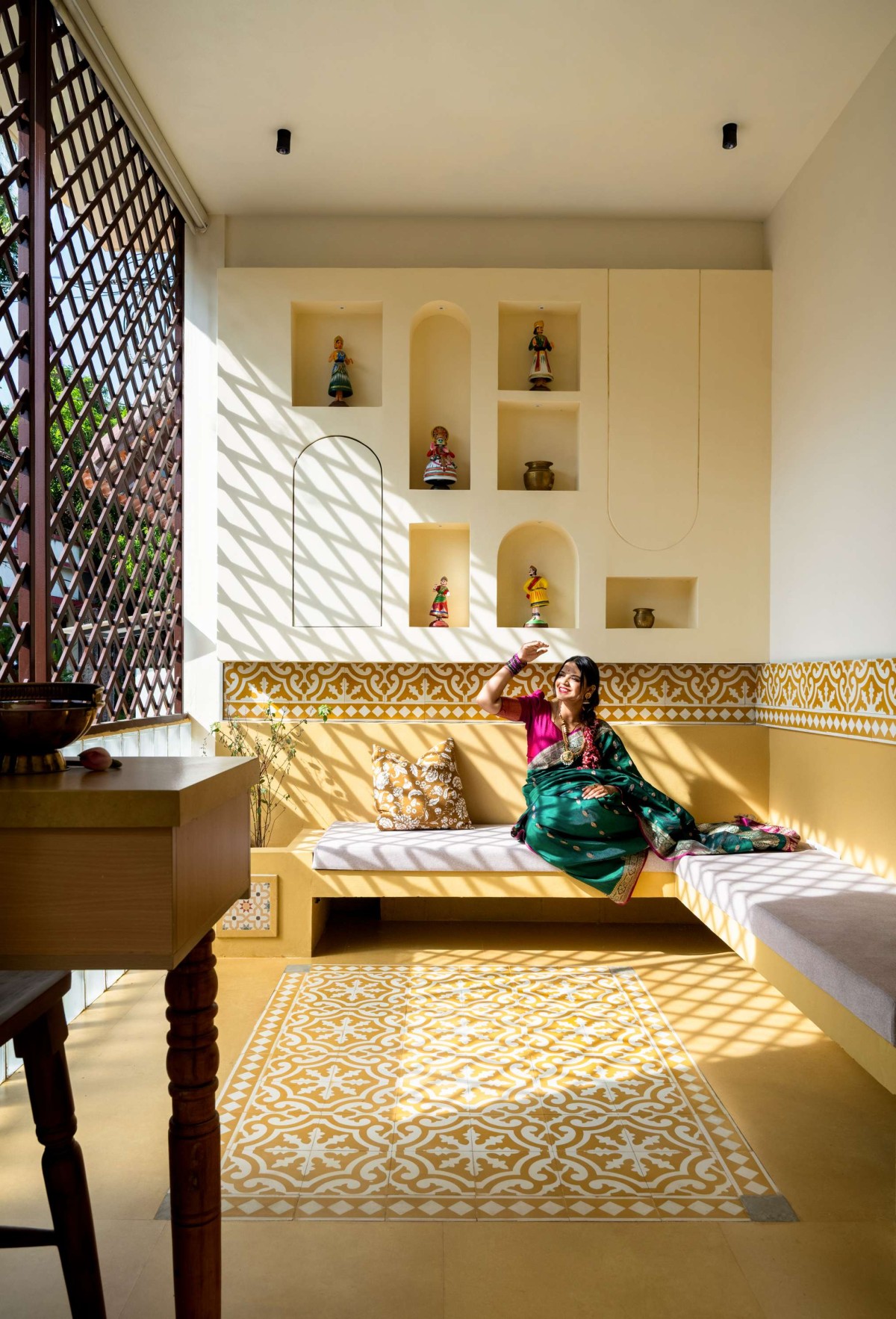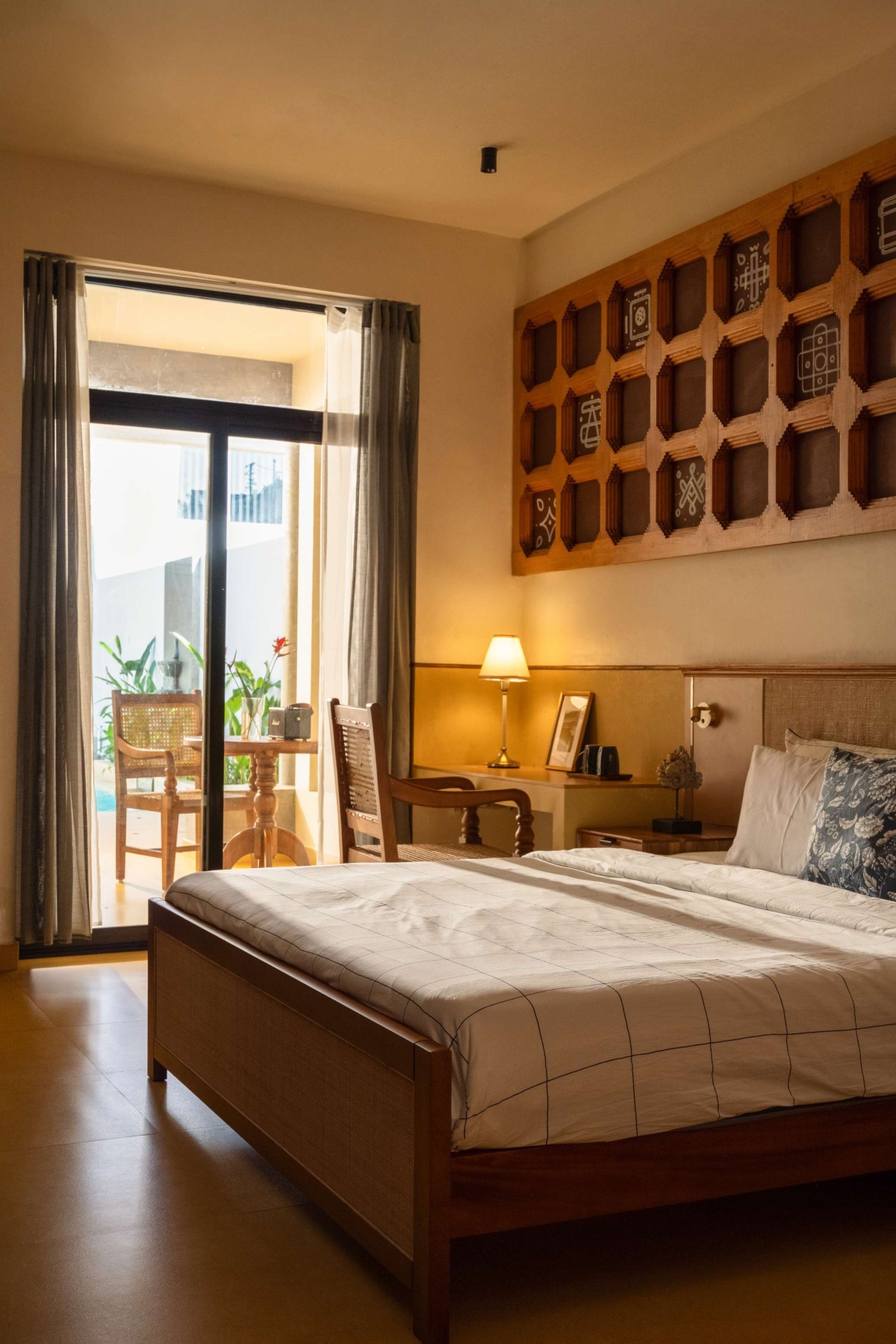 Rejecting the polish of a conventional modern hotel, the interiors embrace warmth and imperfection. Natural wood finishes, tactile fabrics, handmade tiles, and deliberate pops of colour introduce a lived-in charm. These subtle irregularities soften the space, lending it character and authenticity—qualities that transform Gramam Living from a place of stay into an experience of belonging.