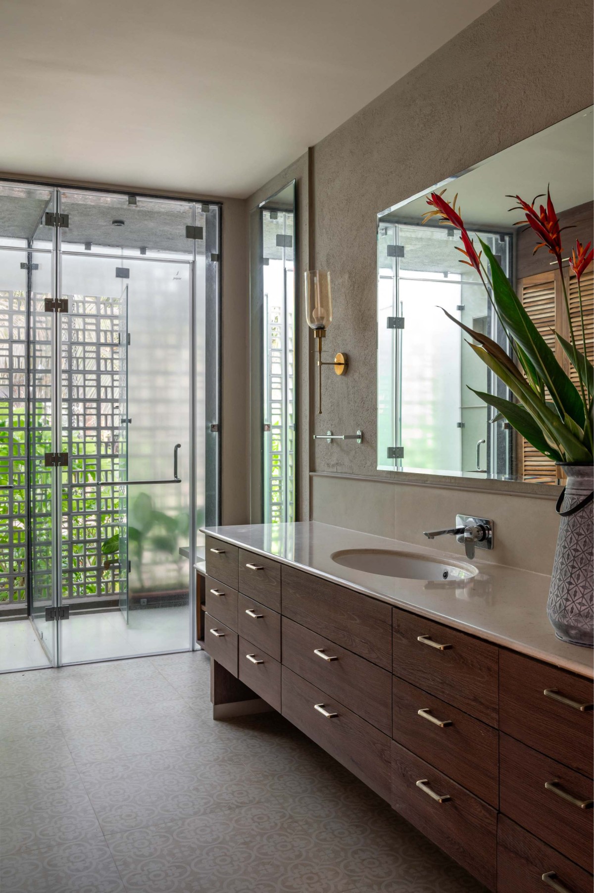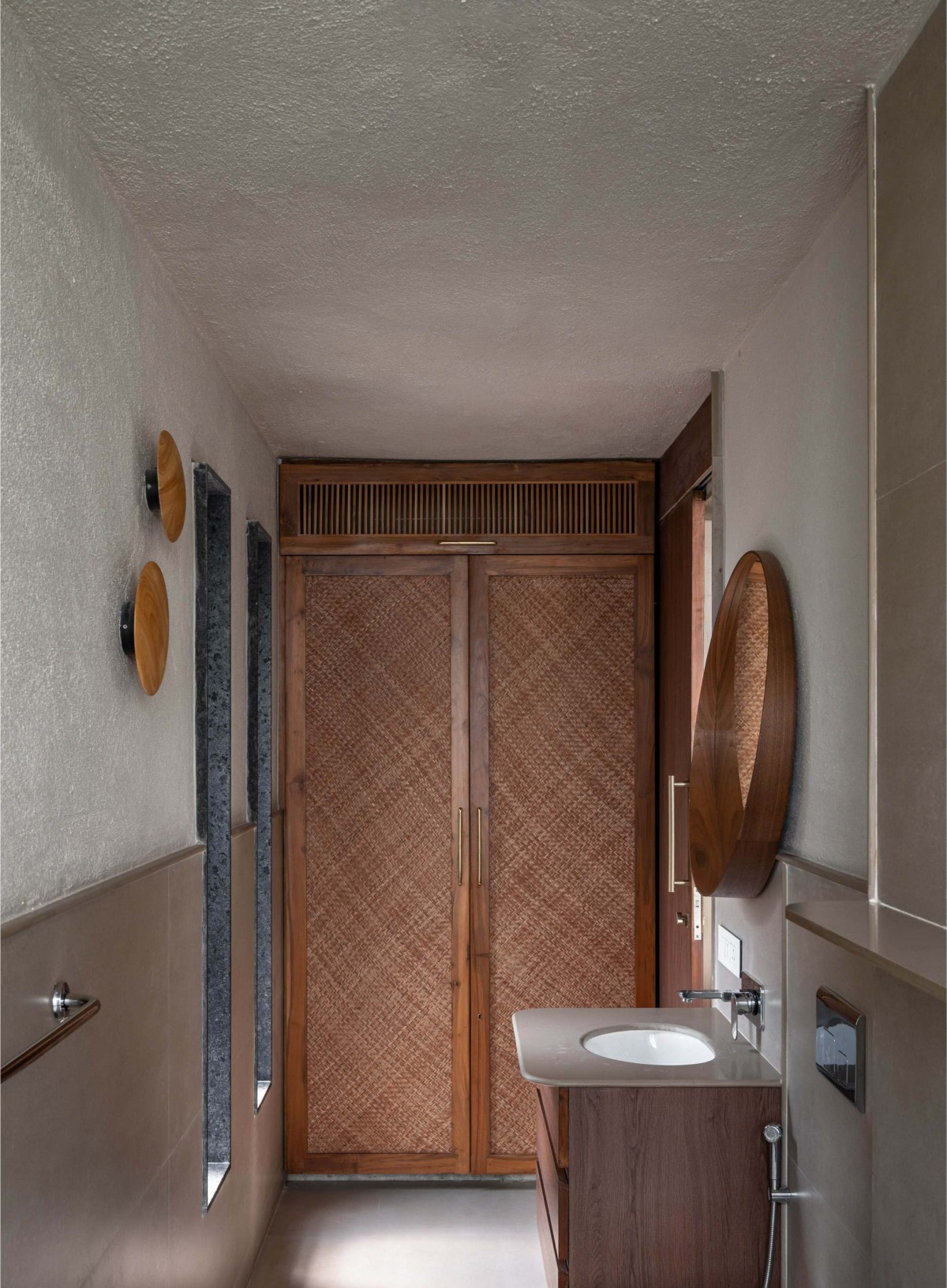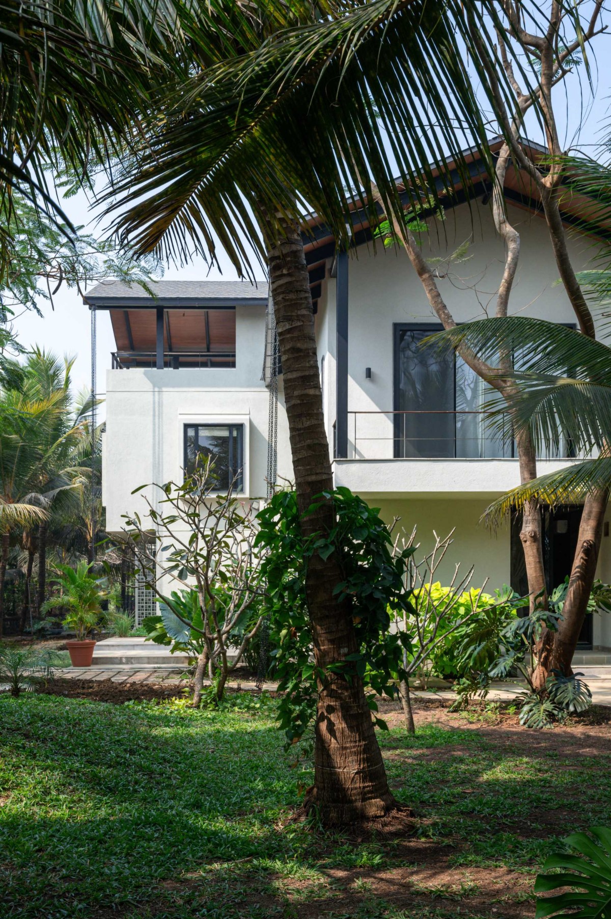 Amidst the crisp tropical sun, salty breeze blowing from the Arabian Sea and under the tall peaks of the abundant coconut trees, the Grove House stands at the end of a sleepy by-lane off the main village road. Concealed from plain sight the property slowly reveals itself as you walk towards the far end of the narrow driveway. A deep porch with heavy plantation welcomes you without revealing much else.