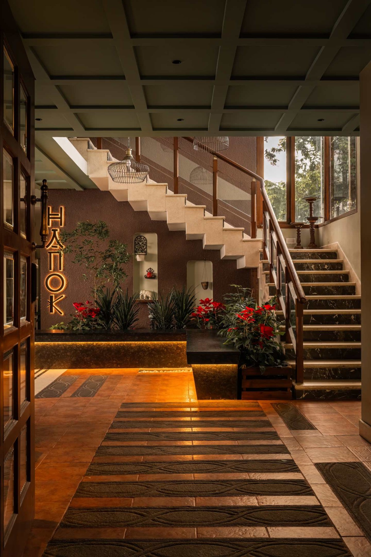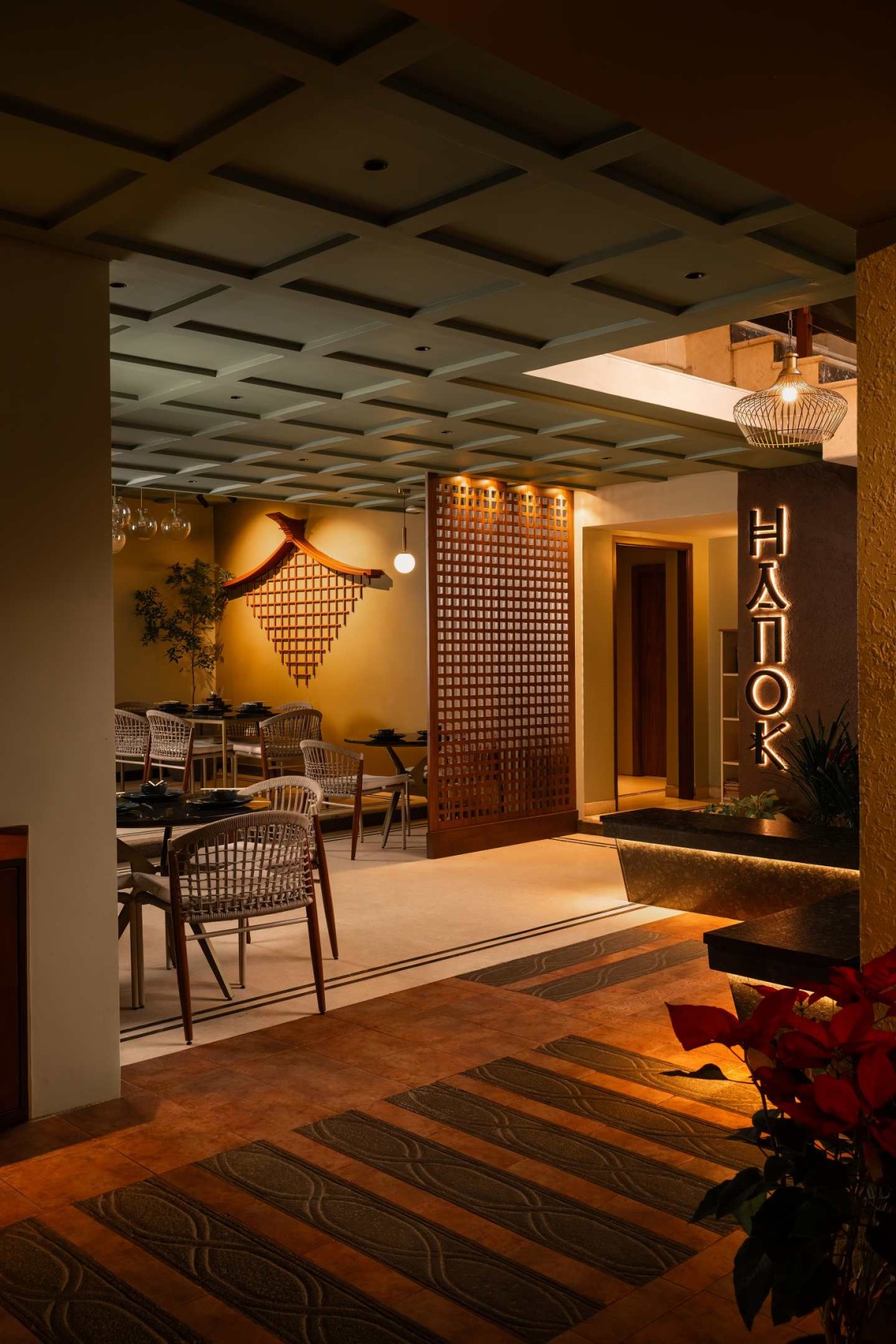 HANOK – Soulful Food is an adaptive reuse project by SAGA Design Studio that transforms a modest private residence in Hyderabad into a Korean-inspired dining space rooted in material warmth, cultural reinterpretation, and budget-conscious design. Curated by Principal Architect Muralidhar Gajula, the project draws from the spatial language of the traditional Korean hanok, translating its sensitivity to nature, crafted tactility, and calm rhythms into an Indian tropical and urban context. Rather than replicating Korean architecture literally, the design abstracts its core elements—pitched roofs, timber geometries, lattice patterns, and indoor-outdoor fluidity—and reimagines them through local construction techniques and regionally available materials.