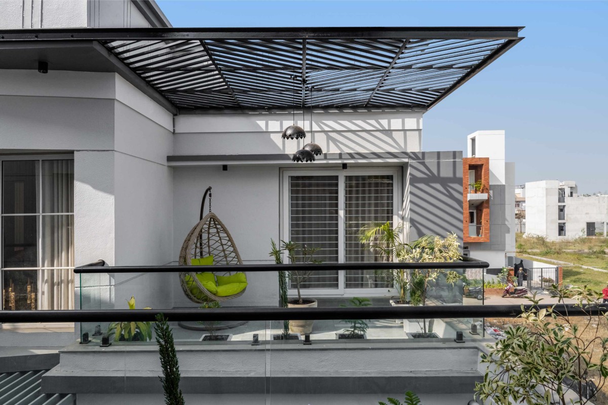 The living room’s many components, including the tv-unit, furniture, and peaceful colour palettes, establish a visual language that gives the home a free-spirited feel. The openness and simplicity of the architecture contributes to creating a sense of inclusivity across the whole house. The design is more interesting and engaging since it uses minimal textures, colour, and materials.