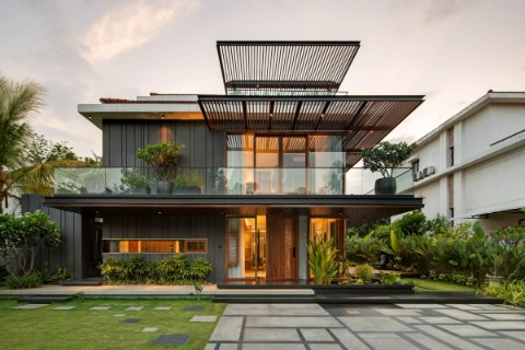 Designed to maximize ventilation while maintaining visual interest, the home represents a solution to counteract monotony, which is often done through visually interesting façades. Though aesthetically pleasing, this solution is important for more reasons than just this. As most of the row houses have shared side walls overlooking the street in Mumbai, the solution of natural light and ventilation is a prerequisite for the design task. Design intent was to create a rhythm and flexible space, where people can live in harmony with natural element in this small plot of land.