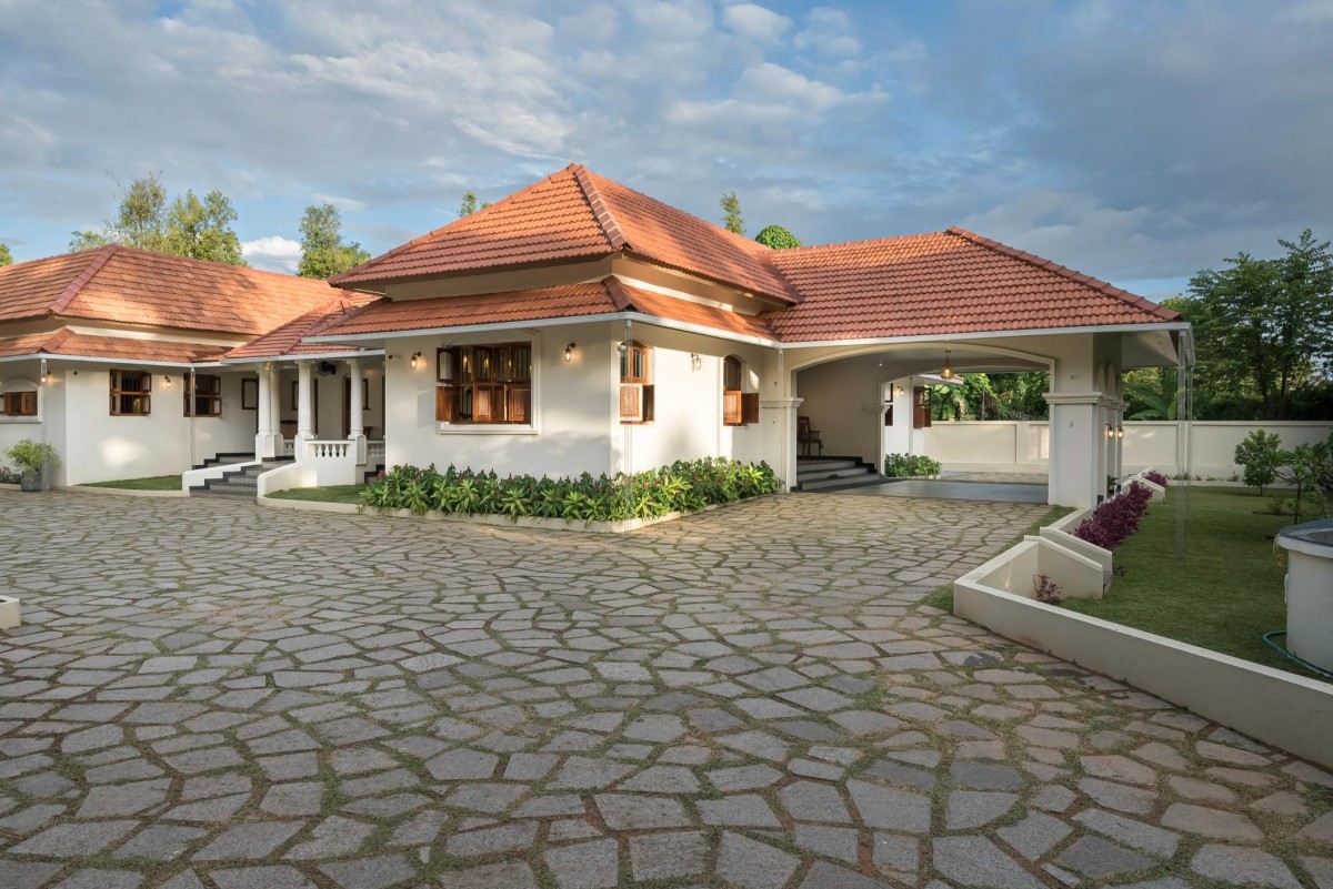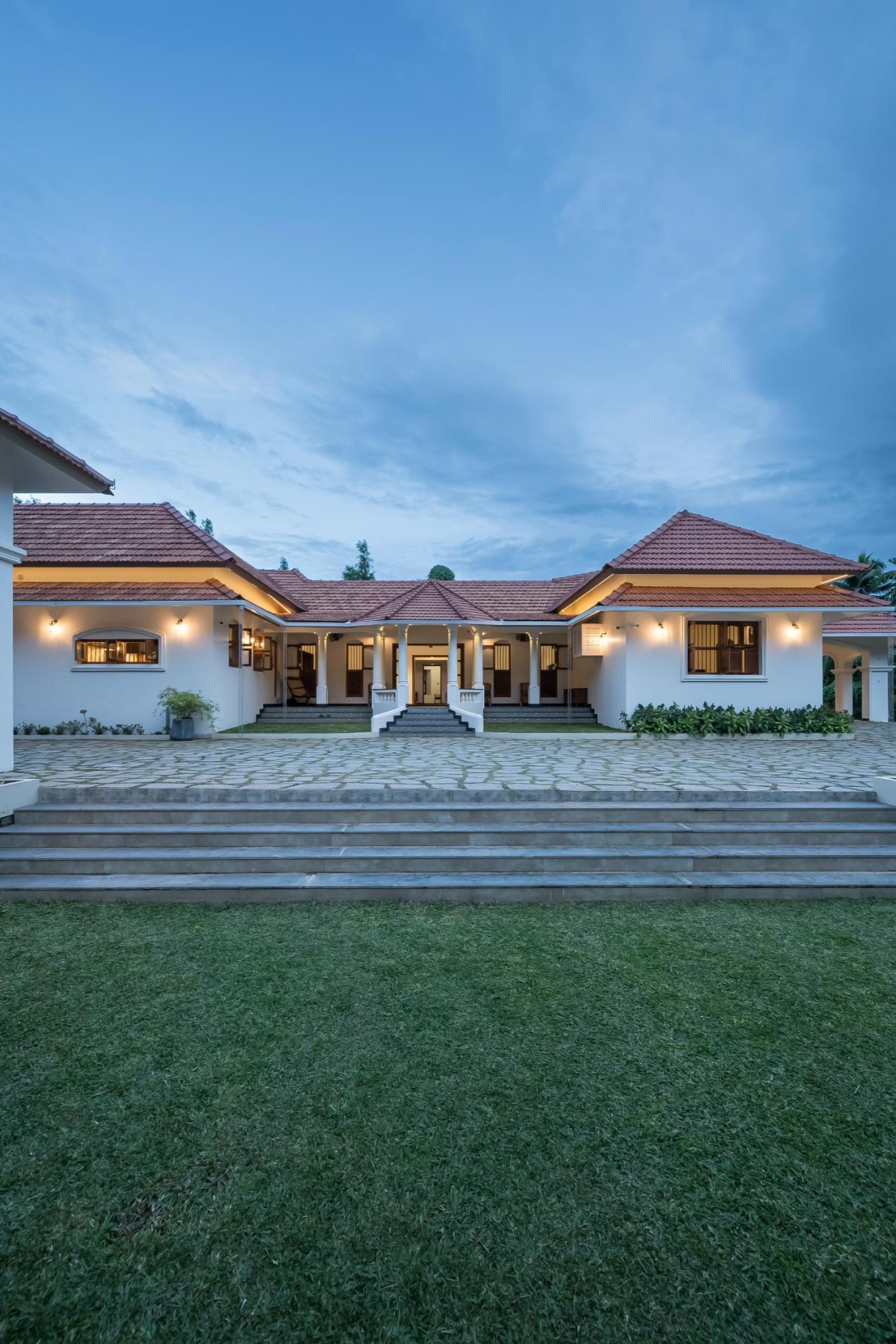 Dusk light exterior view of House of Jithesh by Conform Studio