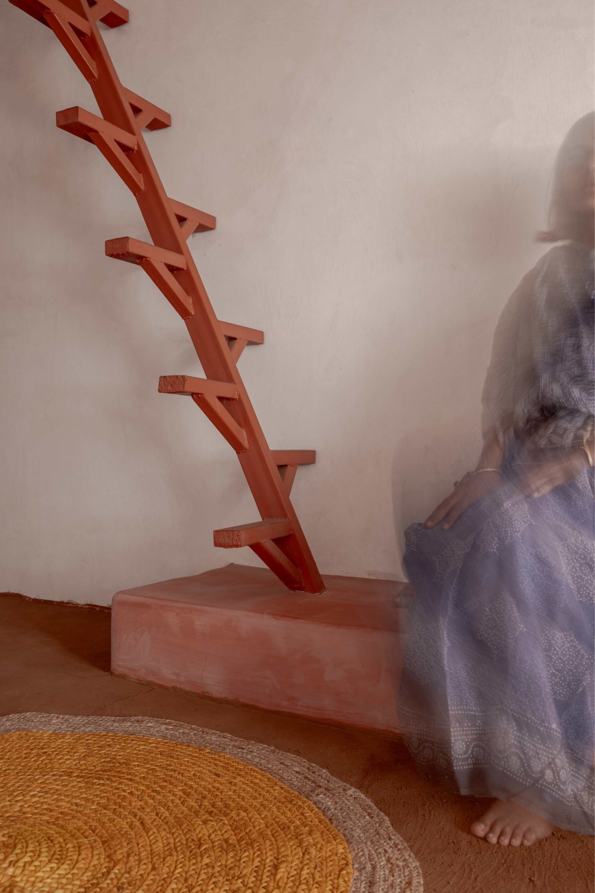 Its architectural language—thick walls, built-in niches, verandahs,—derives from rural logic, regulating heat, organizing space, and fostering social life. The plinth becomes a semi-public edge; the mezzanine, a playful perch; and the semi-open connectors, spaces for pause. Passive cooling is embedded in form, not applied as an afterthought.