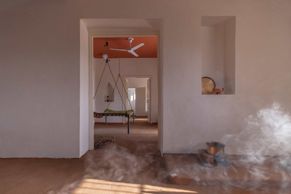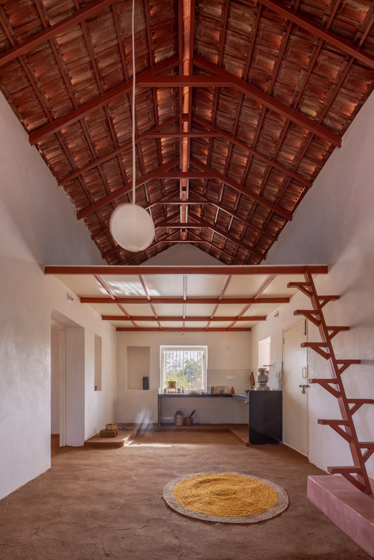 Material choices are local: Stone, brick, lime, bamboo, reclaimed metal sections and timber sourced nearby. Selected for performance, not sentiment, these materials ensure breathability, thermal comfort, economy, and durability. Lime keeps interiors cool; dense masonry reduces heat gain; bamboo is lightweight, cost-effective, and abundant. The project resists the rural trend of urban-style concrete homes, which often perform poorly in climate and adaptability, instead proposing a “regional modernity” rooted in geography and local aesthetics.