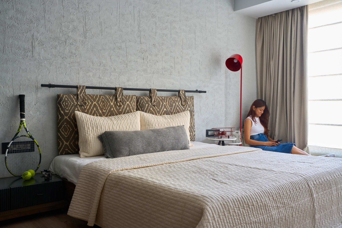 Every space resonates with its user’s personality — the parents’ room balances calmness with the tactile warmth of cane and stone; the son’s bedroom adopts a clean, edgy aesthetic; the master suite combines a soft, modern-industrial sensibility. Across all, a quiet dialogue of contrast unfolds — rough and smooth, matte and glossy, natural and crafted.