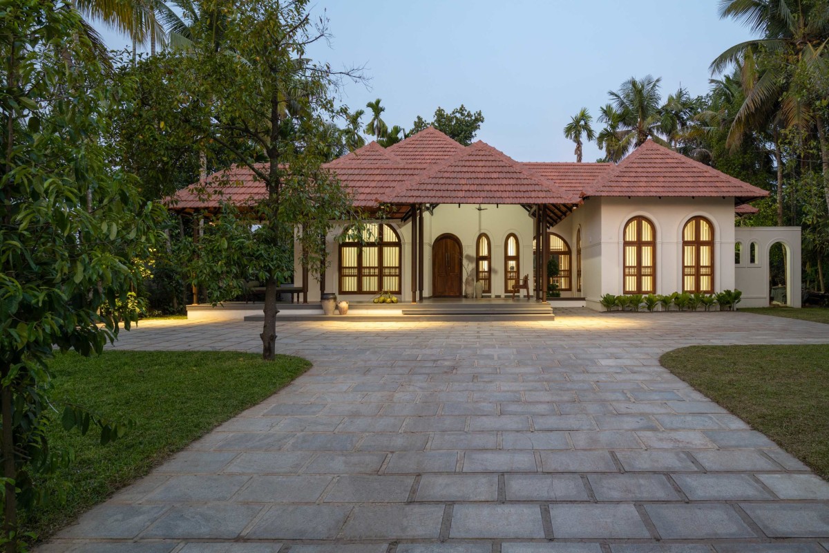 Dusk light exterior view of Kallingal Tharavadu by Design Verses