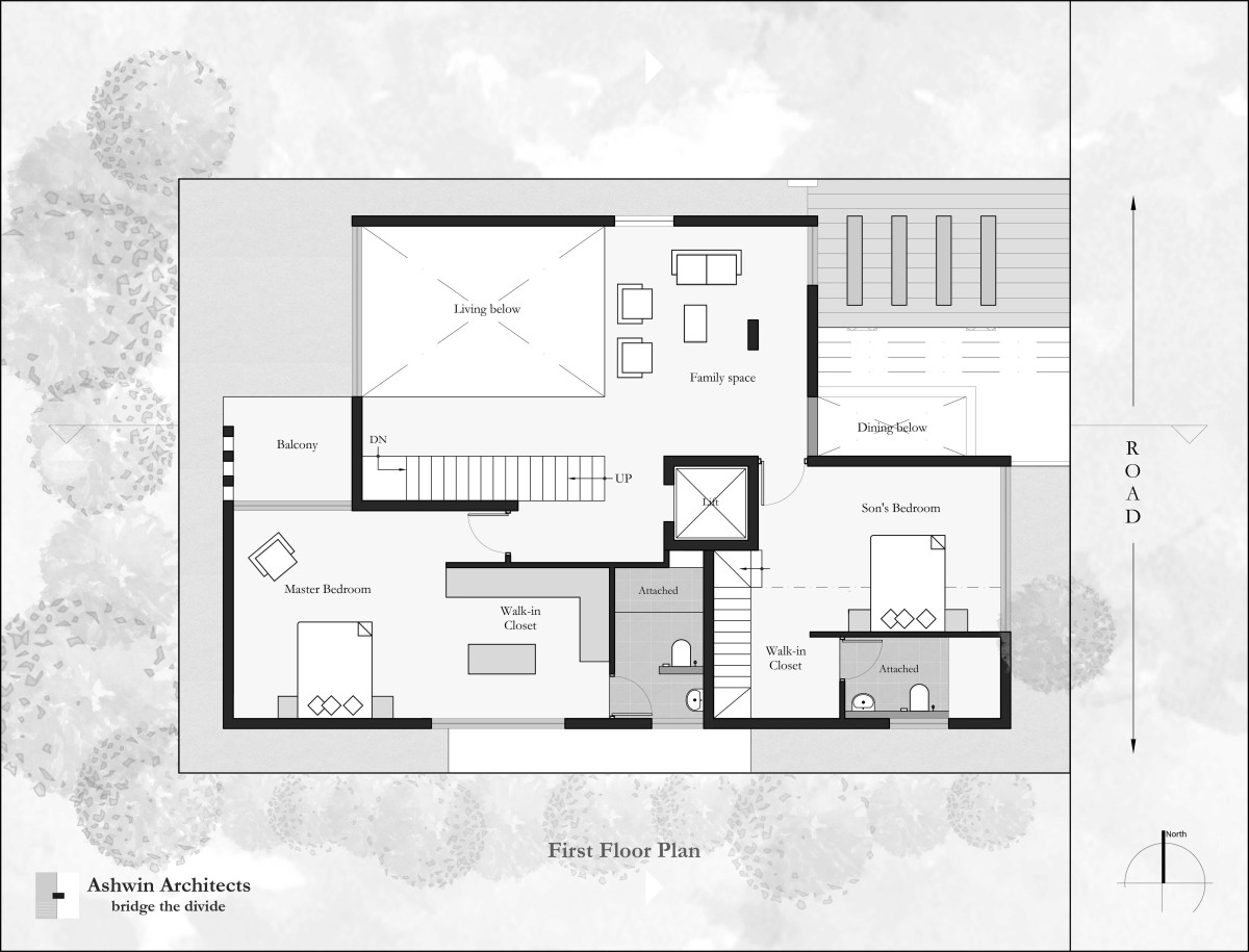 First Floor Plan of Kodalli Happy Place by Ashwin Architects