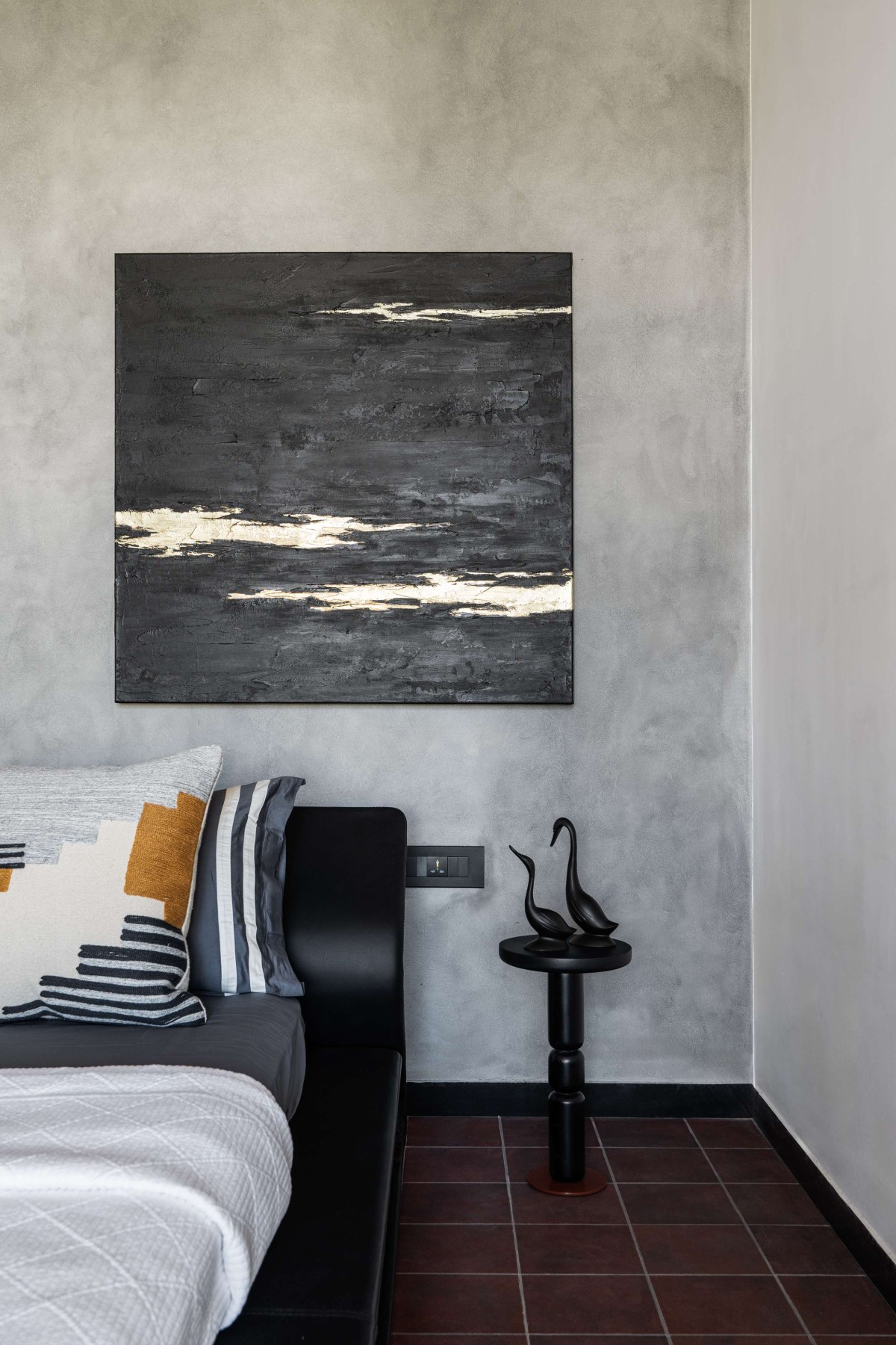Upstairs, a family lounge fosters informal gatherings, while the son’s bedroom, tucked under the sloped roof, is bright and characterful. A quiet study nook provides a dedicated corner for focus and reflection.