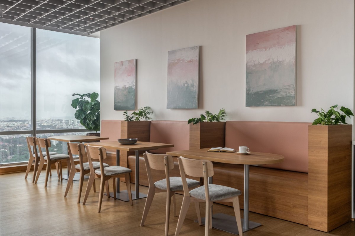 “With its open layout and tactile finishes, the cafeteria sets a welcoming rhythm, a pause point in the workspace where design invites connection.”– Ar. Masoom jindal Soft tones, clean lines, and thoughtful textures come together in this space where comfort meets elegance. Subtle pops of the colour and natural light breathe life into the design, creating an inviting atmosphere effortlessly balancing minimalism with vibrant warmth Turnkey 5.0 has designed in such a way that the space naturally supports both focus and interaction, blending aesthetic simplicity with everyday practicality.