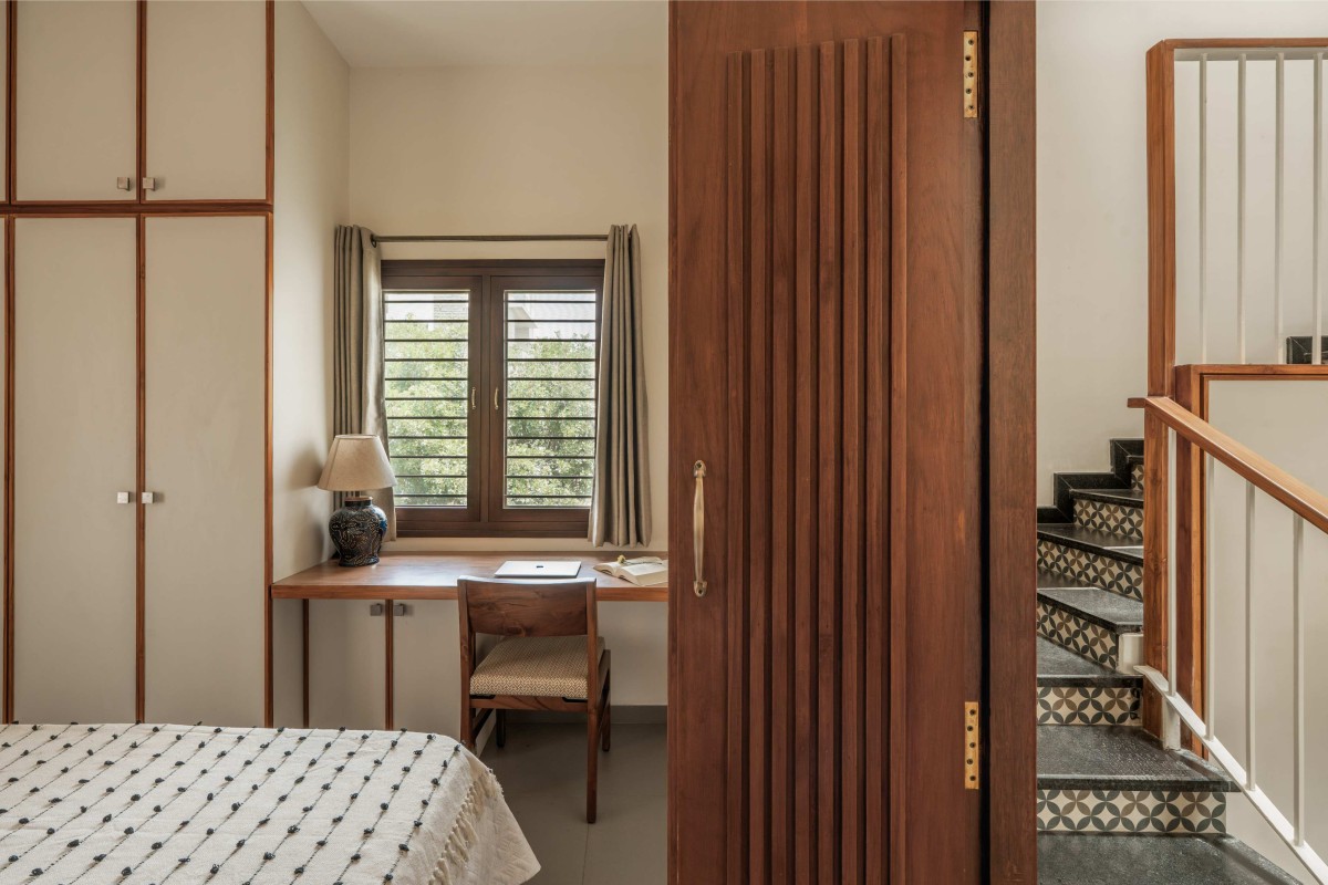 The master bedroom also features a charming study nook, complete with a thoughtfully designed desk and tastefully curated chair and decor.
