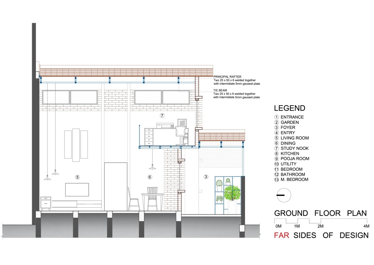 Ground floor plan of Mud Block House by Far Sides of Design