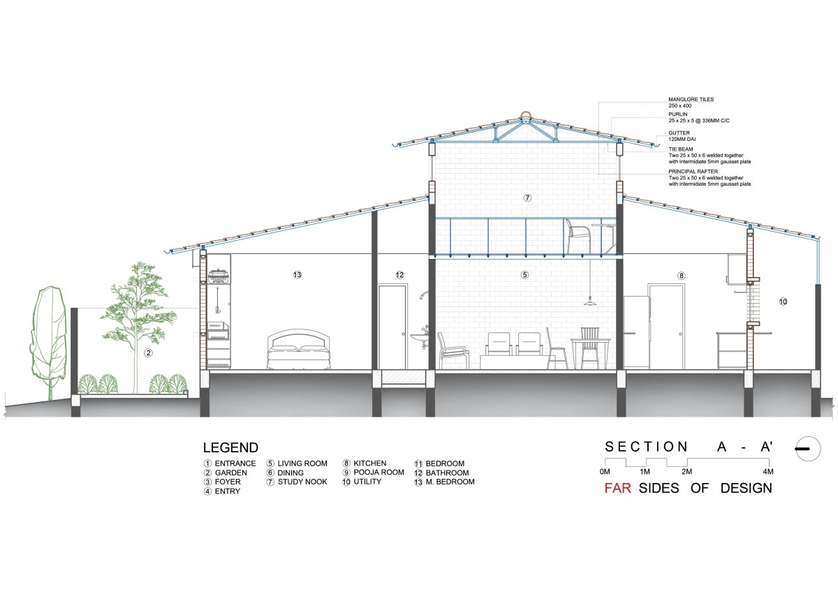 Section AA of Mud Block House by Far Sides of Design