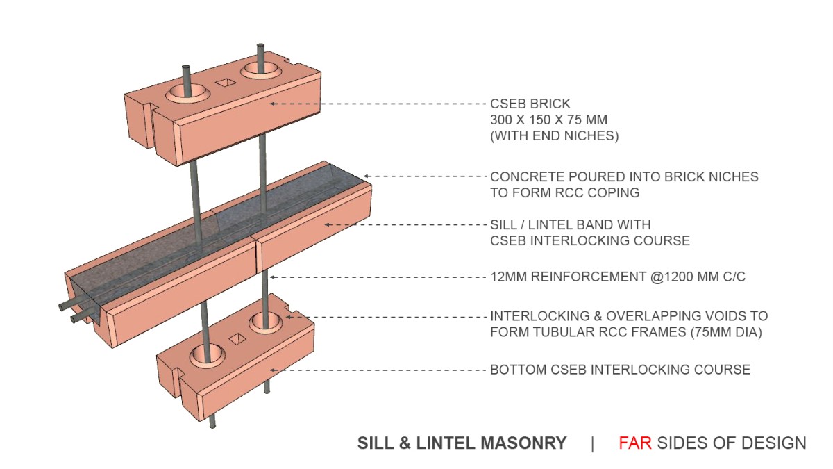 Sill & Lintel Masonry of Mud Block House by Far Sides of Design