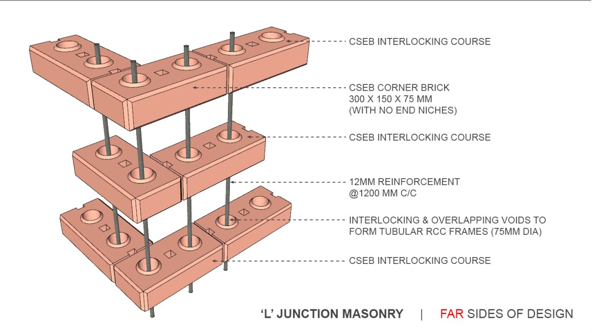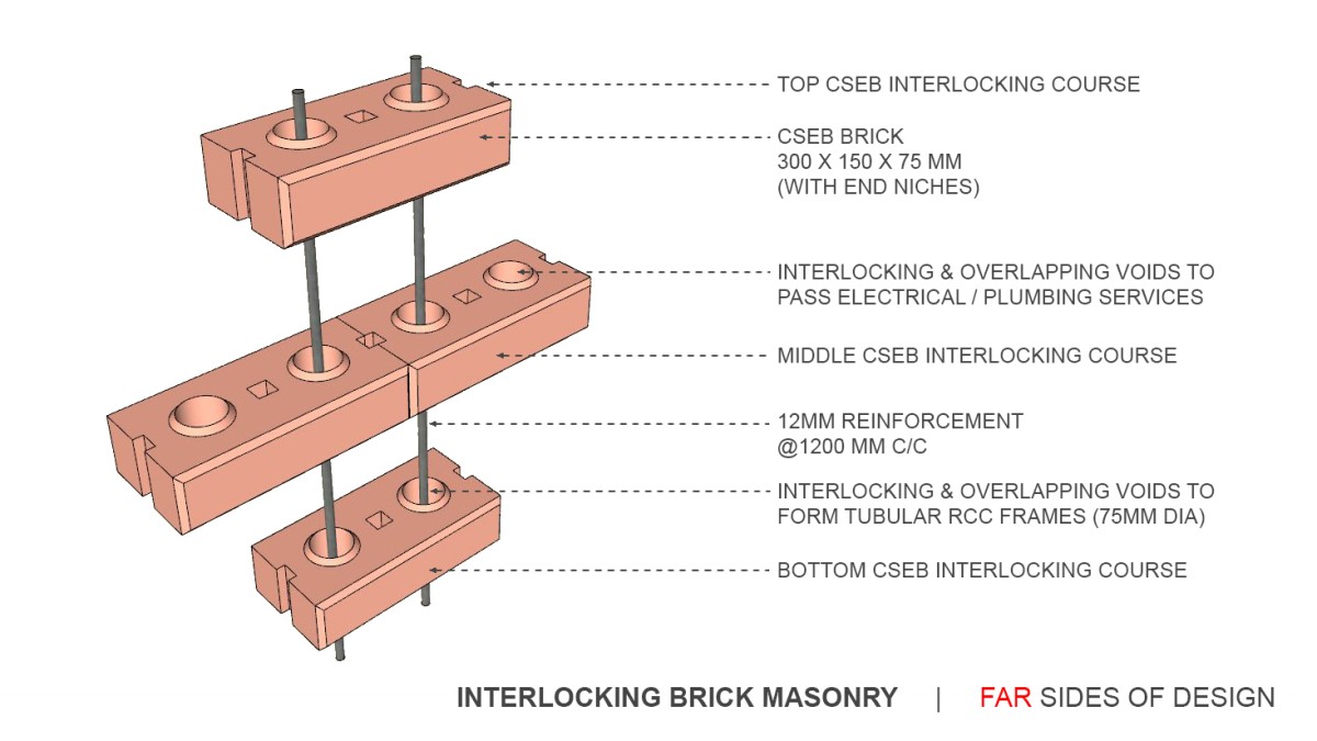 Interlocking Brick Masonry of Mud Block House by Far Sides of Design