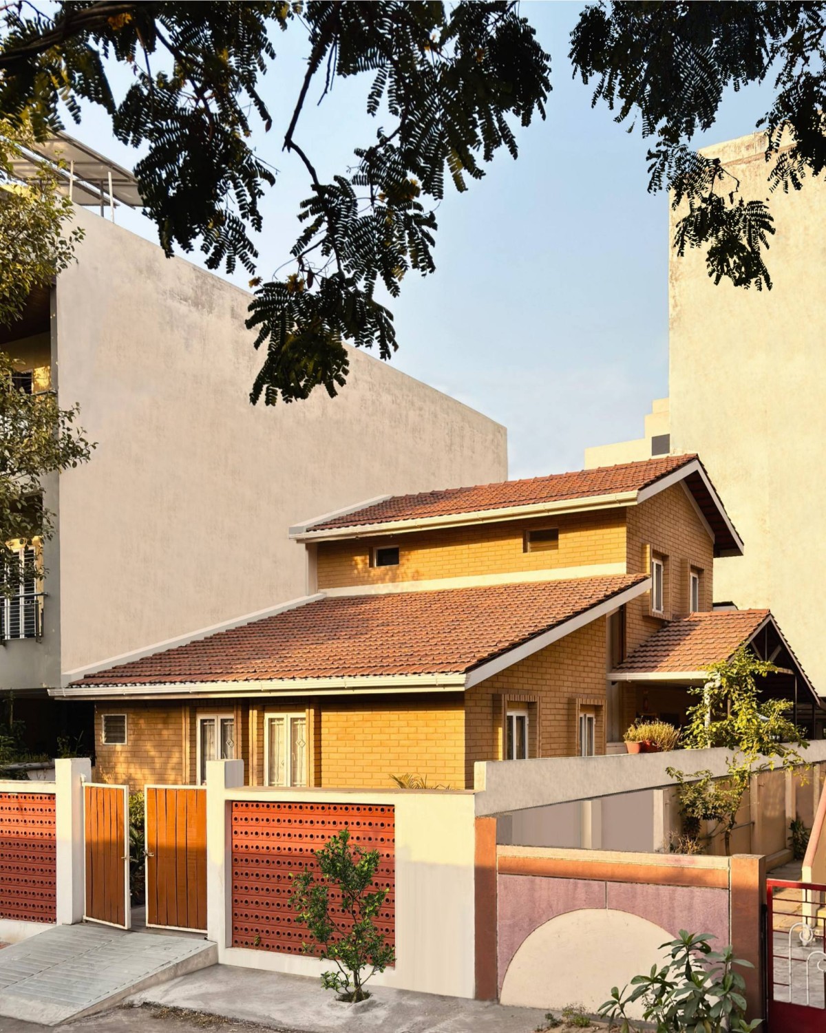 Exterior view of Mud Block House by Far Sides of Design