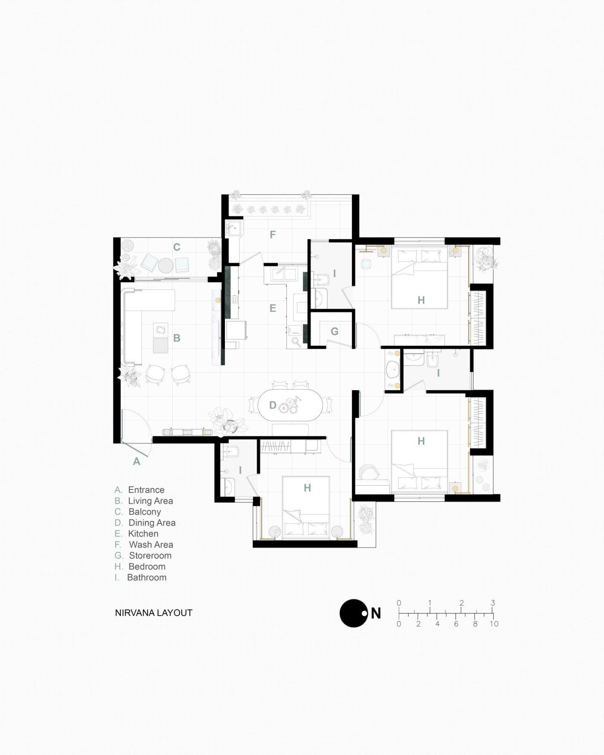 This project is intended to enhance daily living while offering an inviting space for hosting gatherings, embodying a sense of perfect peace and happiness—aptly named “Nirvana”. As my personal residence, Nirvana serves as an ideal living space for my family, which includes my wife, my retired parents, and myself.