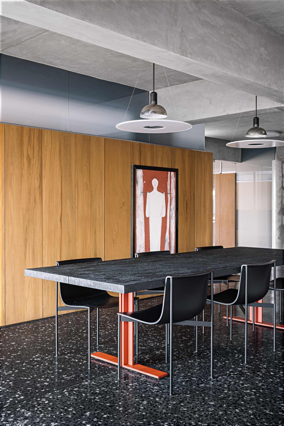 The lift halts on the 11th floor, a softly lit entrance foyer, recessed to create a welcoming feel with a bright artwork against a neutral grey wall contrasted by the black terrazzo floor, an eight feet wide door with its wood carved handle, stands ready for a handshake.