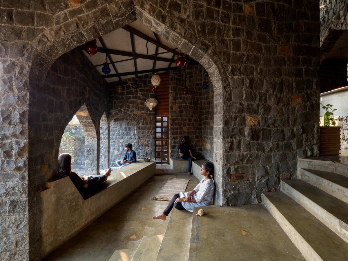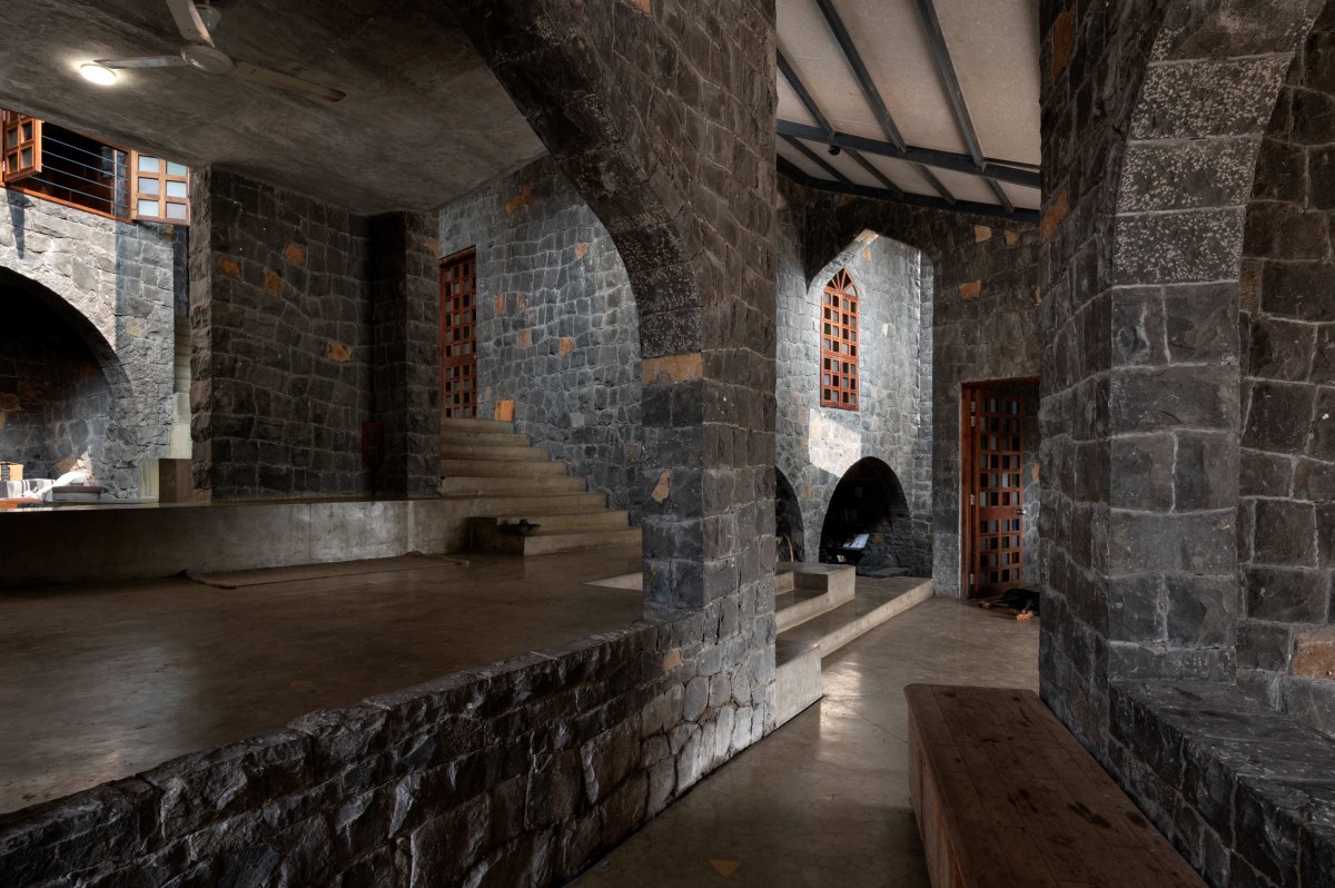 Padvi, signifying the passive austere living in parts of rural India is constructed using local basalt stone masonry. As they mentioned ‘Well…Paresh though we shall get local stone at cheaper rate but, the expense to train local masons in this losing skill of working with Basalt would be quite high…!’ Paresh replied- ‘I am ready to spend more money if it benefits the local people’. This collaborative effort not only built a group of craftsmen who learnt stonework but also equipped them to carry on with it in future.