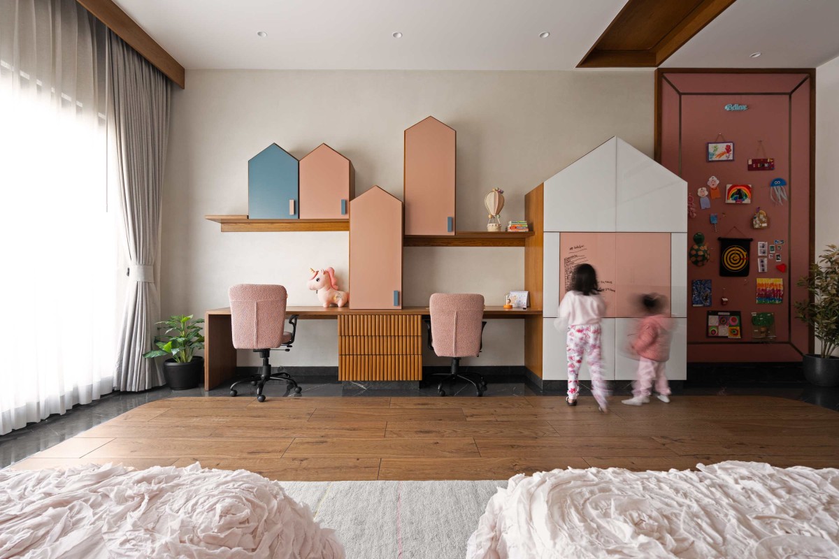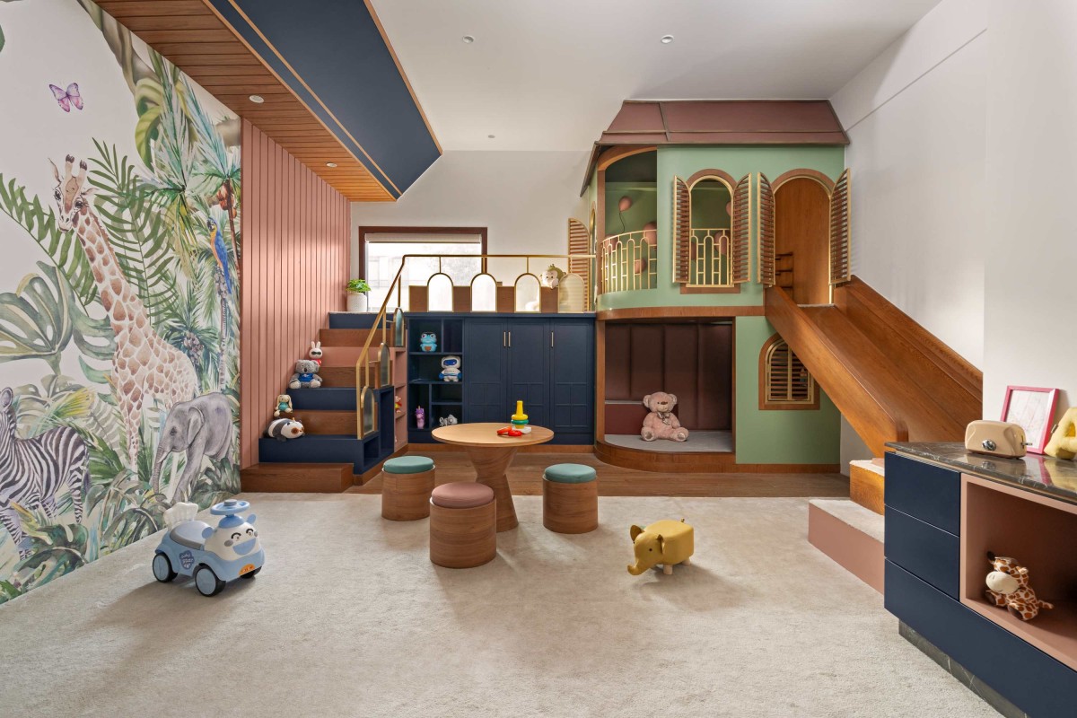 Overall, this residence defines modern luxury by harmonizing bold elegance with playful creativity. Thoughtfully curated materials, vibrant colors, and functional detailing create a home that nurtures family bonding, individuality, and imagination for the kid’s wellness. Each space tells a unique story balancing sophistication and warmth to craft an environment that is as expressive and cozy as it is luxurious.