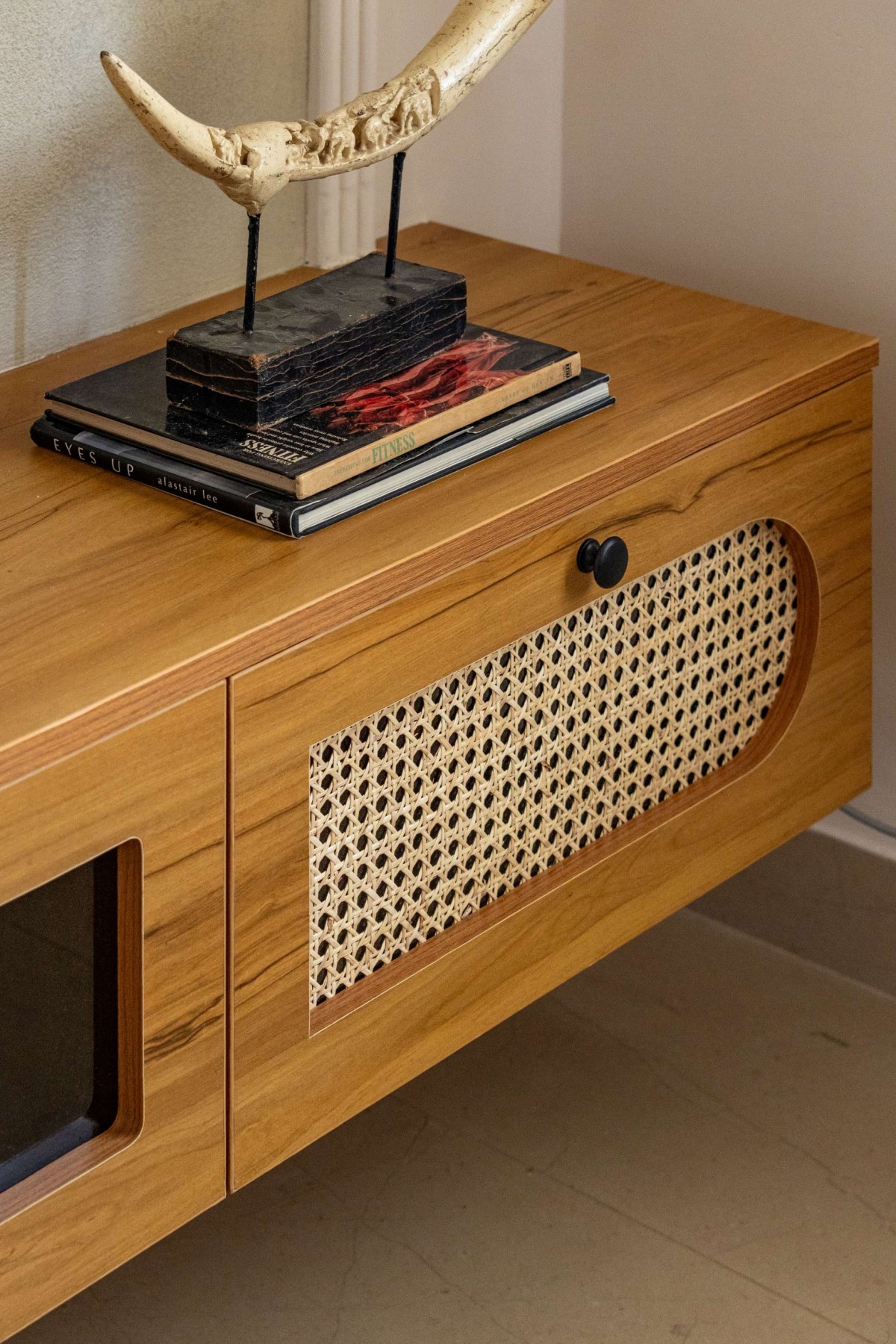 Detailed shot furniture console of Project Ādya by Concept-D Architects