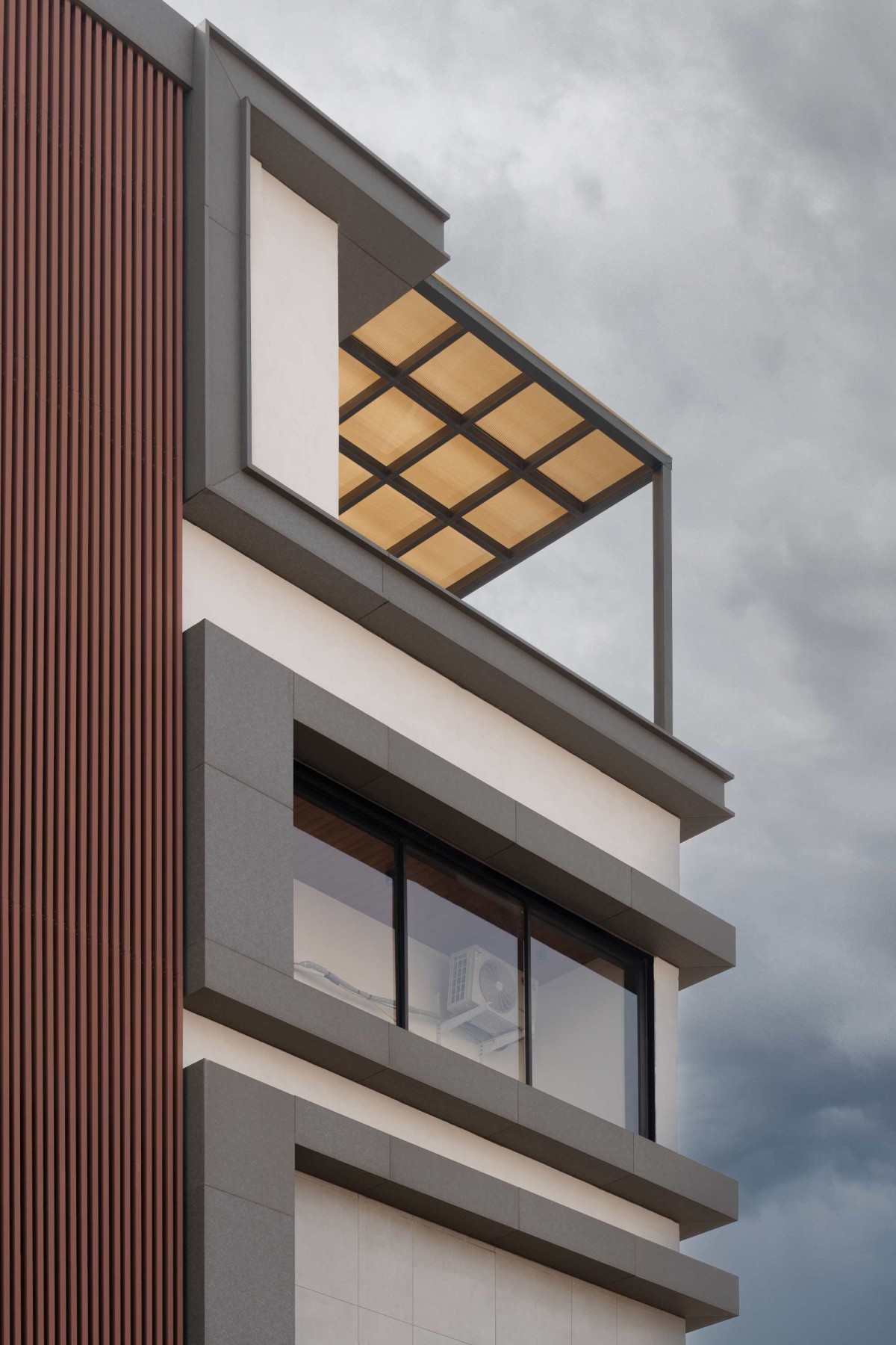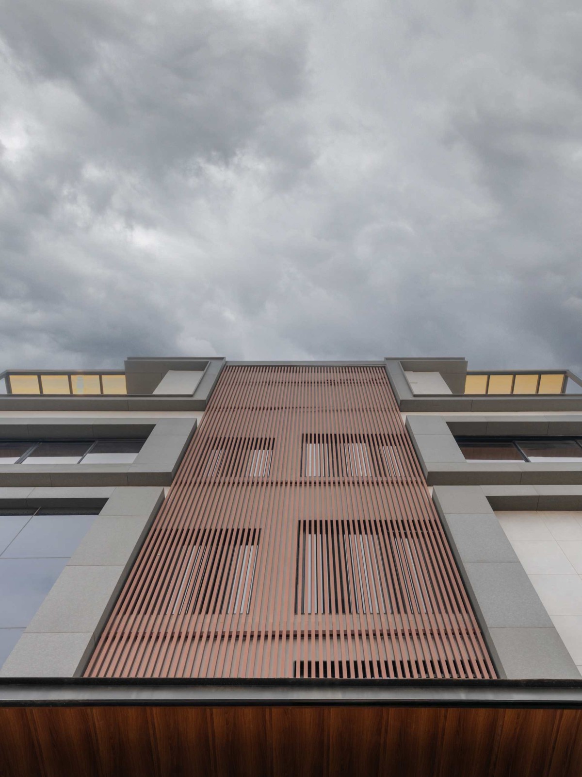 Deep overhangs and framed balconies provide shaded spill-out spaces for residence, improving thermal performance. The resulting façade is restrained yet assertive, operating as an environmental filter while presenting a contemporary, well-defined presence within the evolving urban streetscape, contextually responsive.