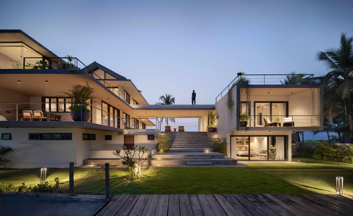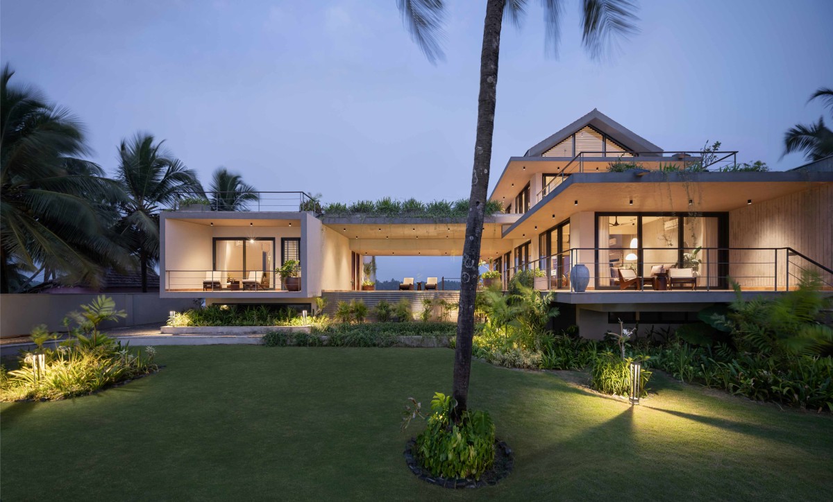 Night Backyard view of Rooh by Thomas Parambil Architects